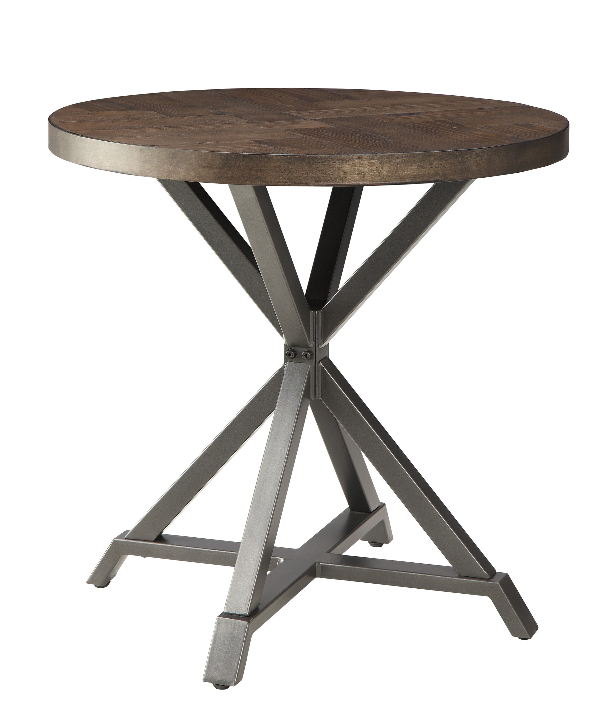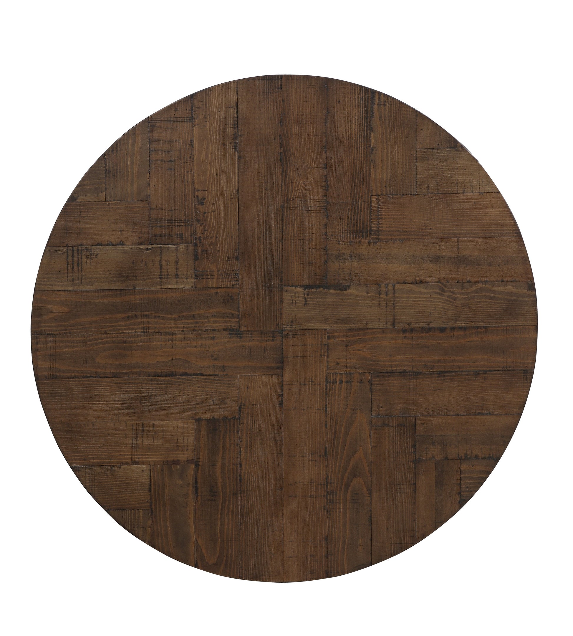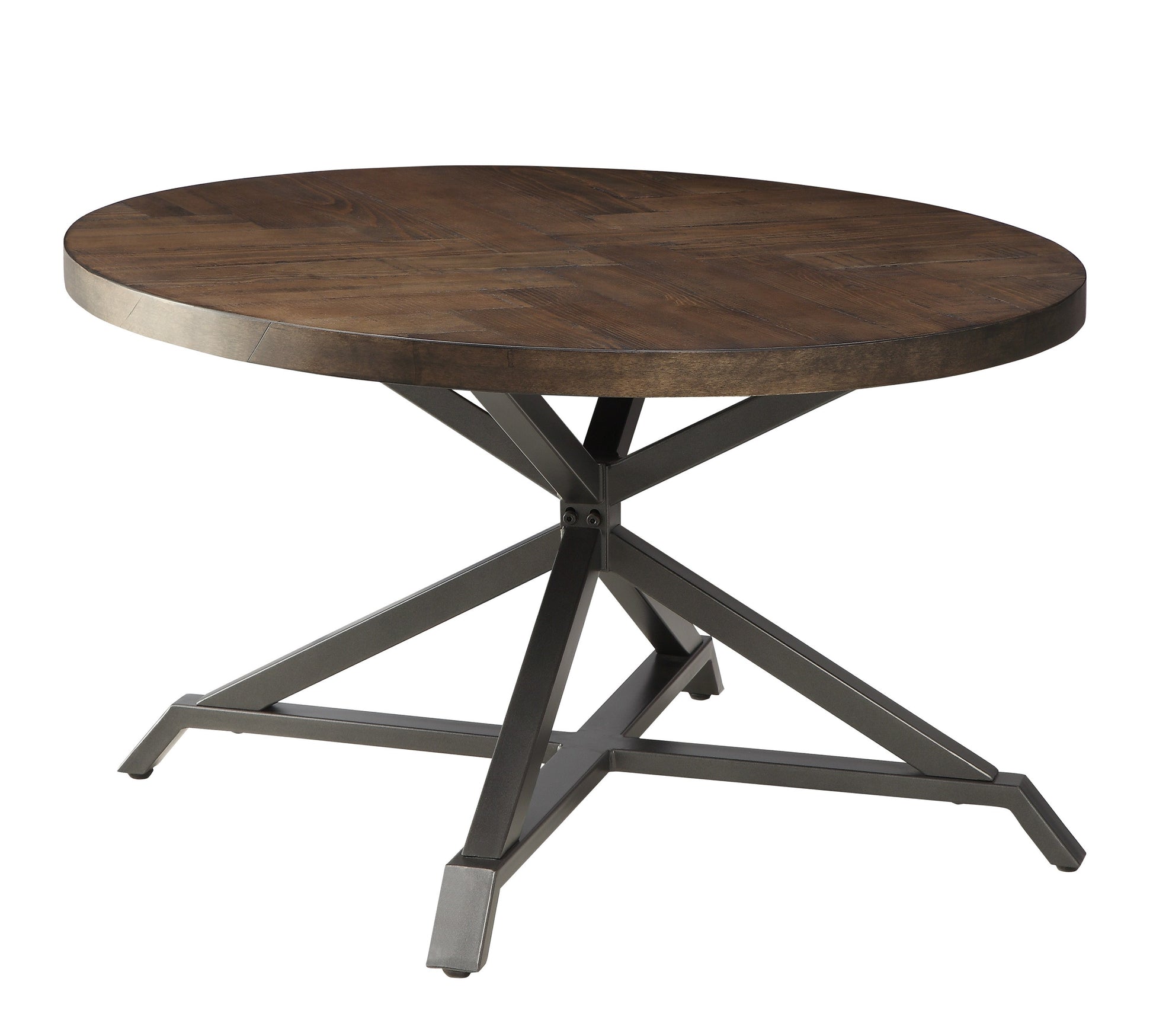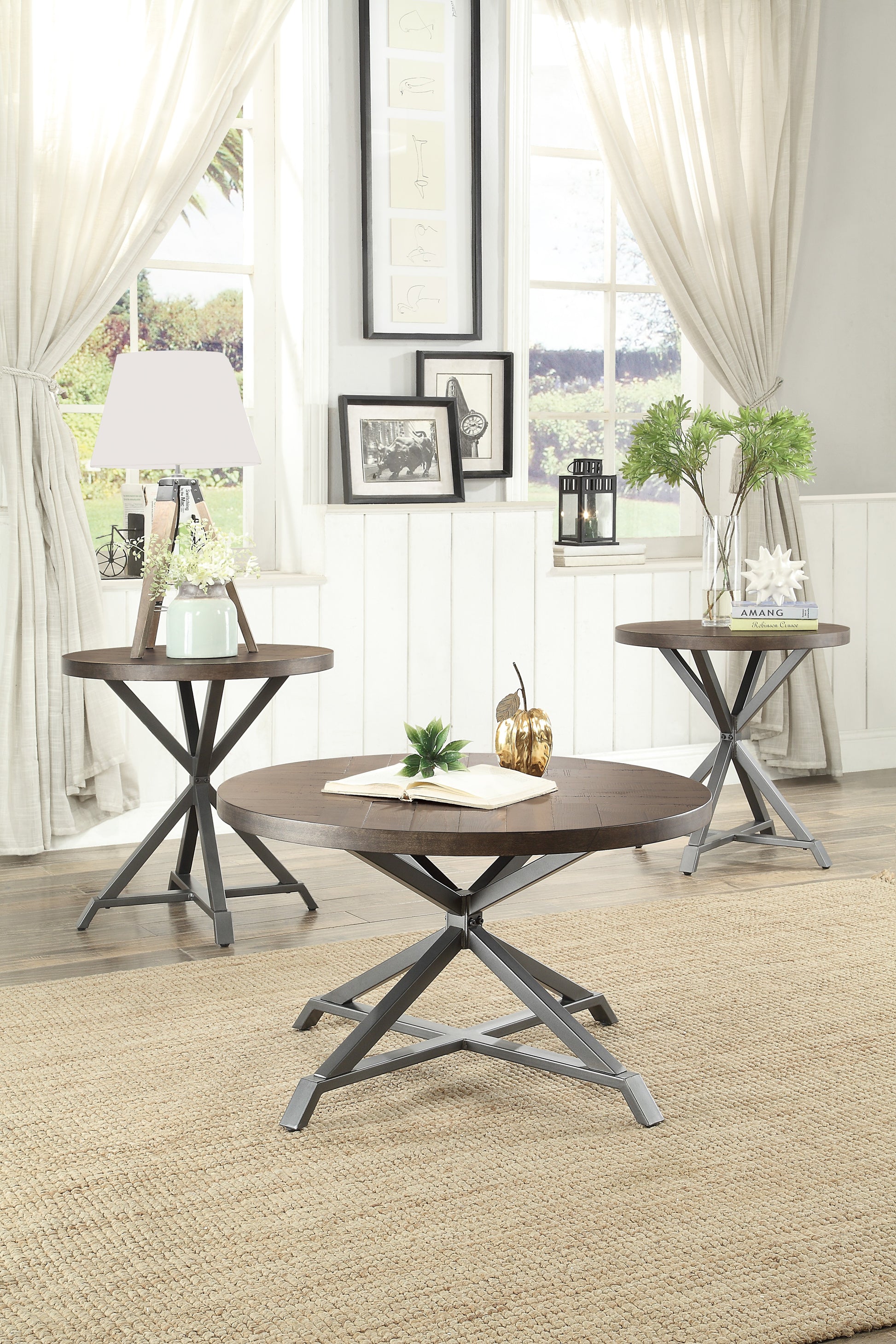 Wood and metal are combined to create the rustic industrial style of the Fideo Collection. Metal framing encircles the profile of the wood-topped cocktail and end tables of this 3-piece occasional collection. Pine veneer is featured in a herringbone pattern and has been given a burnished finish to complement the gray metal frame.