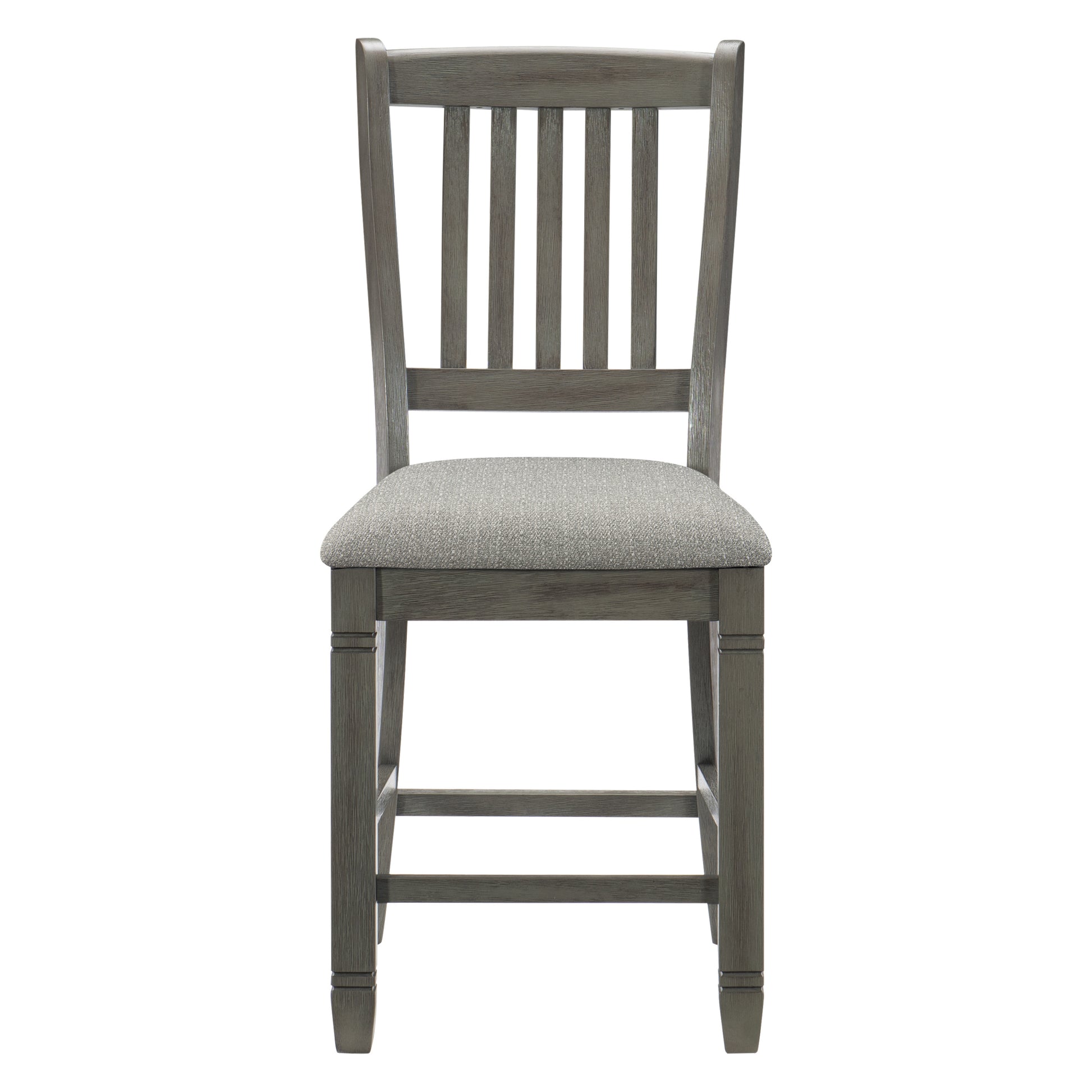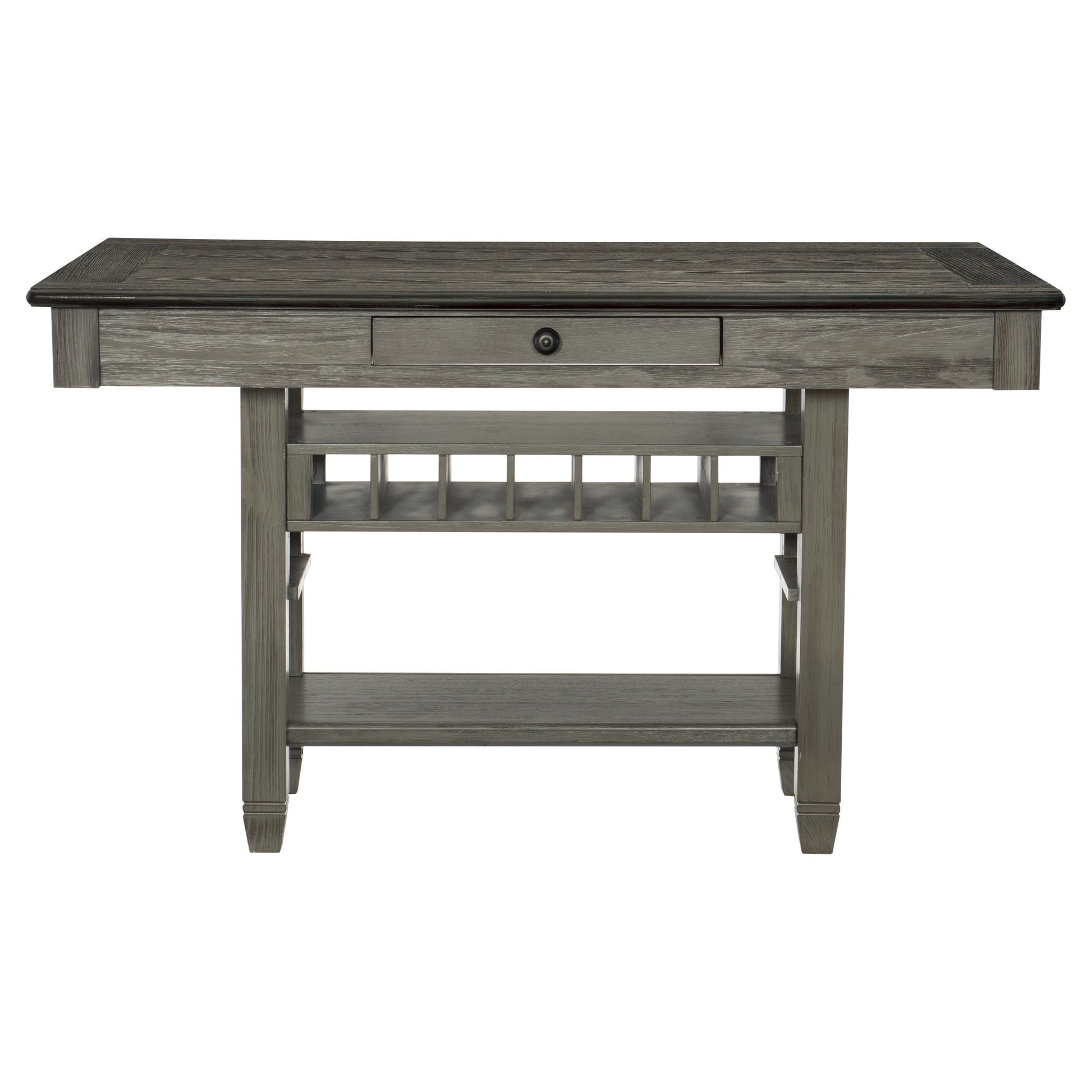 Inspired by the aesthetic of a casual country kitchen, the Granby Collection is an inviting gathering spot for mealtime with familyand friends. A two-tone finish of the counter height table presents as a harmonious combination of color. The gray fabric seat complements antique gray finished counter height chair frame. 4-drawer on table apron and a 3-door server provide ample space in which to store your tabletop accessories.