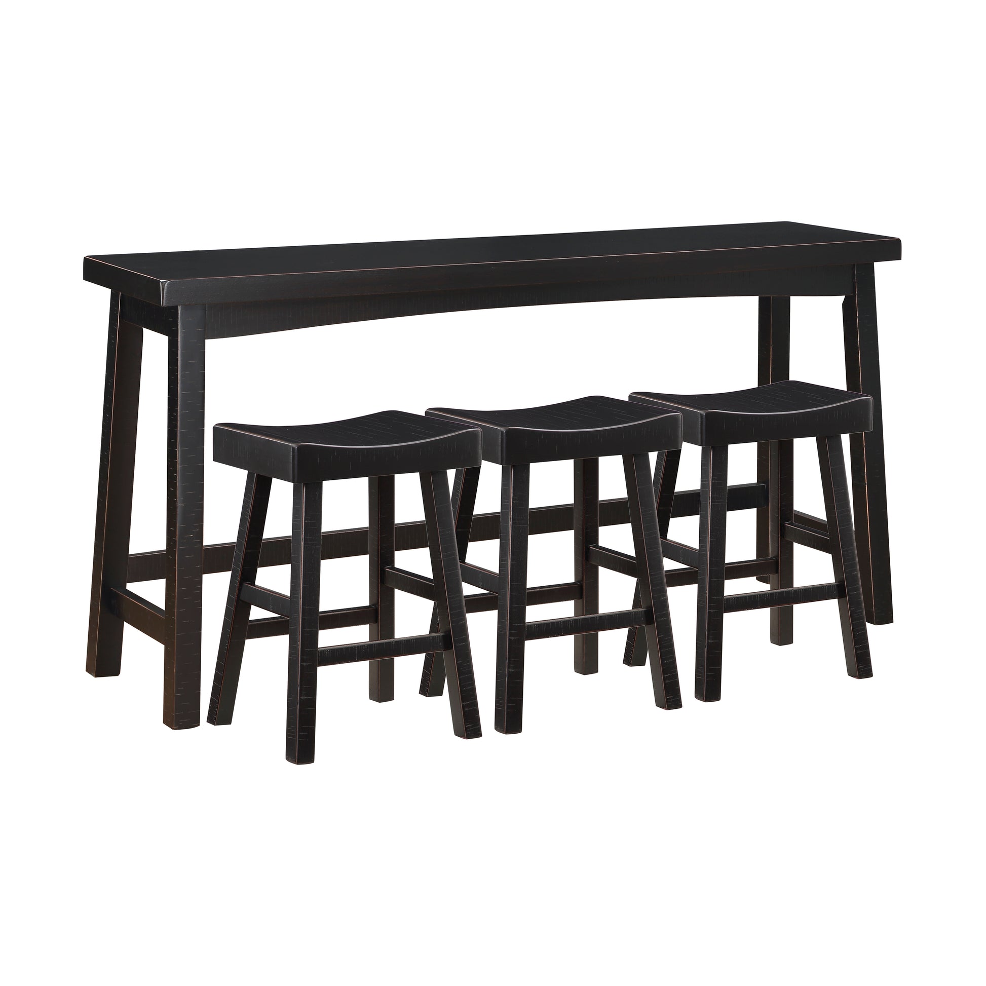 Stylistically versatile for placement in your home’s casual dining space, the transitional design of the included three 24-inch contour-seat barstools and 36-inch bar-height table is complemented with rusticated accent, subtle profile, and a neutral finish – black rub-through - to make the Caspian Collection a perfect choice for your dining needs.