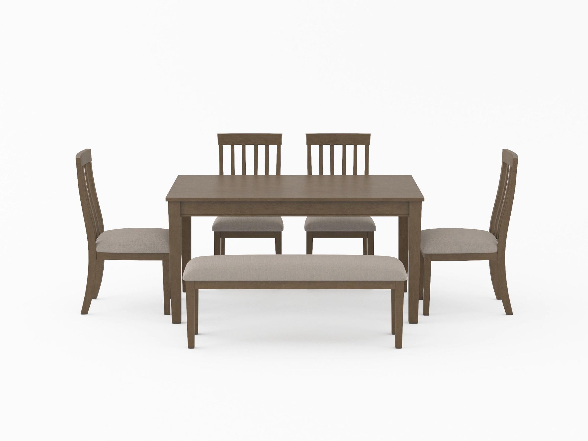 Functionality beyond the expected use of a tabletop makes the Armhurst Collection the perfect addition to your casual dining space. The wire-brush brown finish, over oak veneer, of the collection is a versatile option for your decorative preferences. The wood framed 48-inch bench with a neutral tone fabric-covered seat.