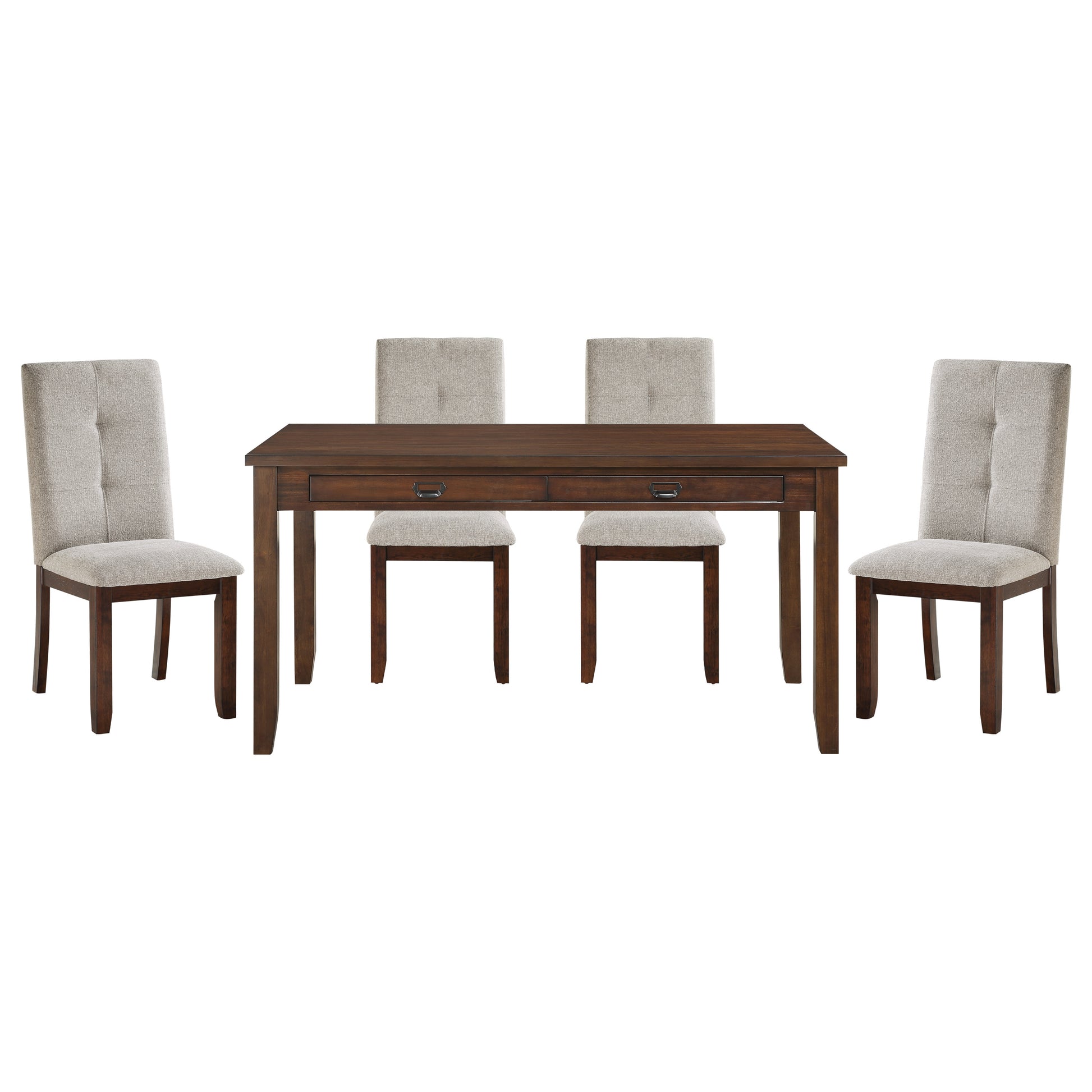 - Dining set includes dining room table and 4 side chairs