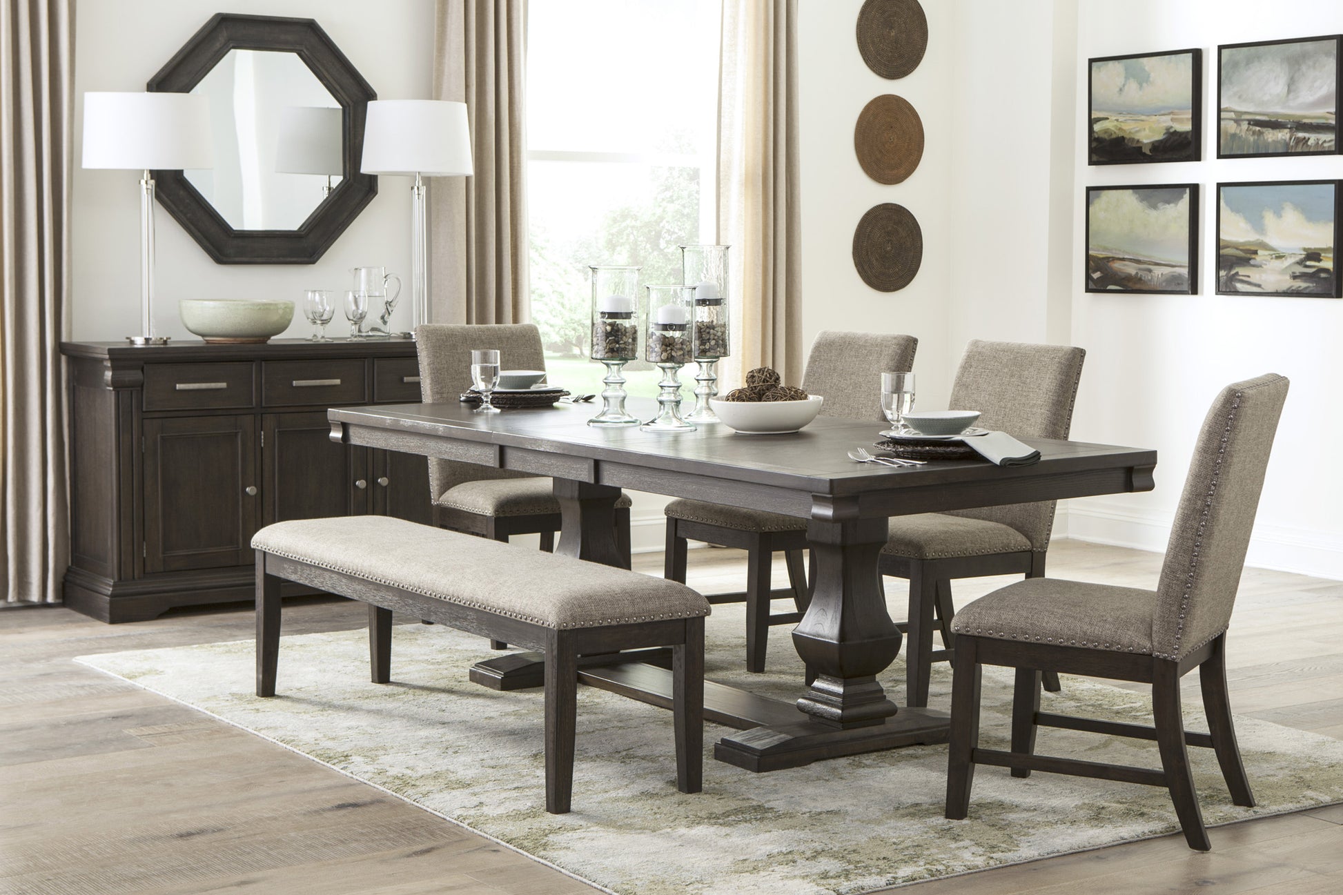 An elegant blend of traditional styling and rustic aesthetic combines to create the look of the Southlake Collection. The rectangular tabletop is supported by a double pedestal base, it’s urn profile lending distinct accent to your dining room. The wire-brushed rustic brown finish highlights the oak veneer.
