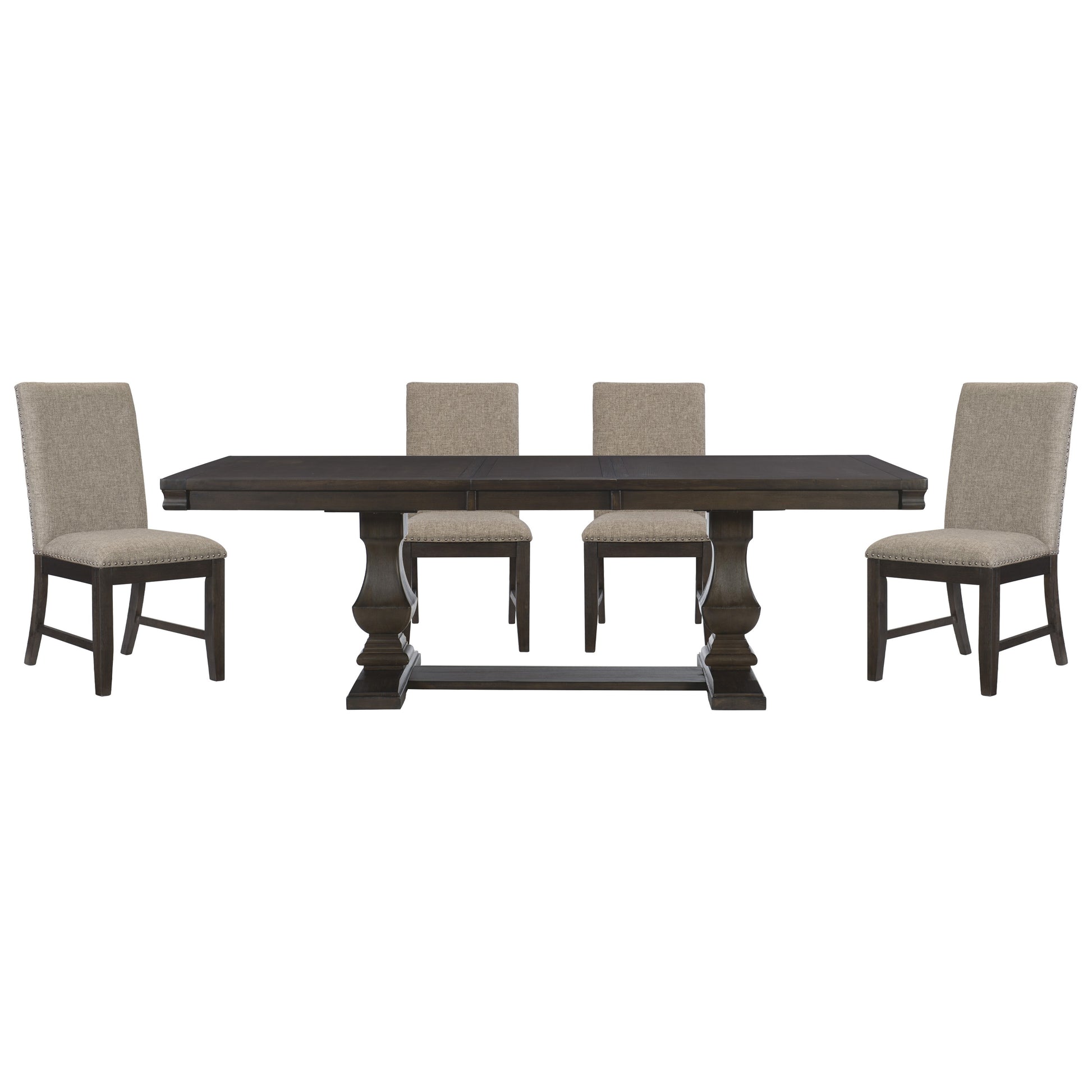 An elegant blend of traditional styling and rustic aesthetic combines to create the look of the Southlake Collection. The rectangular tabletop is supported by a double pedestal base, it’s urn profile lending distinct accent to your dining room. The wire-brushed rustic brown finish highlights the oak veneer. The brown linen-covered seats and backs of the side chairs provide complementing contrast to the table. An available bench provides an alternate seating option. The available server provides ample behind door and drawer storage in which to stow your tabletop accessories. The server doors and drawers feature nickel bar and knob hardware.
