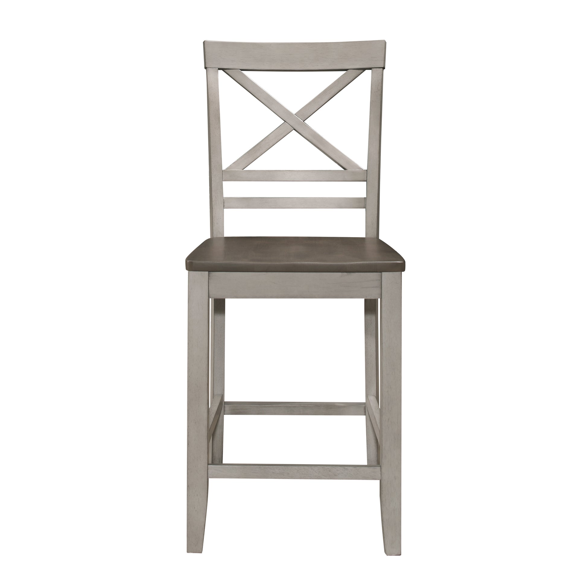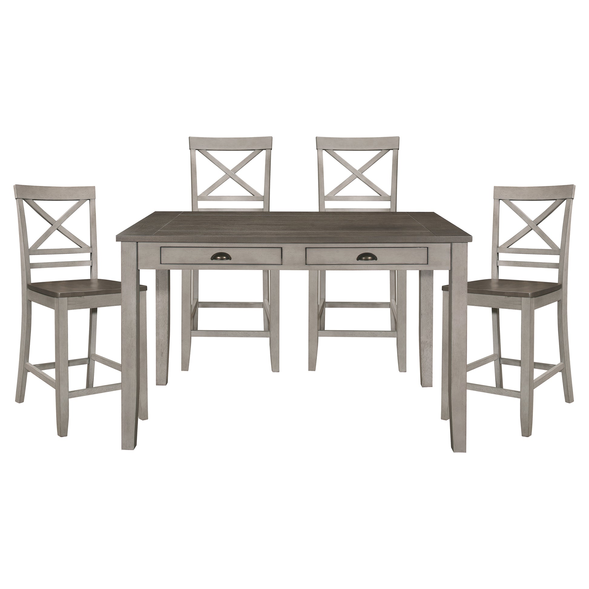 With a design that pairs well with your preference for transitional country styling the Brightleaf Collection will provide a functional addition to your casual dining space. The two-tone finish, over ash veneer, of the counter-height dining table features a brown tabletop and light gray base, with the color combination carrying over the coordinating counter height wood chair. The table’s apron features 4 functional drawers, each accented by antique brass-finished cup hardware, allowing for convenient storage of your tabletop accessories.
