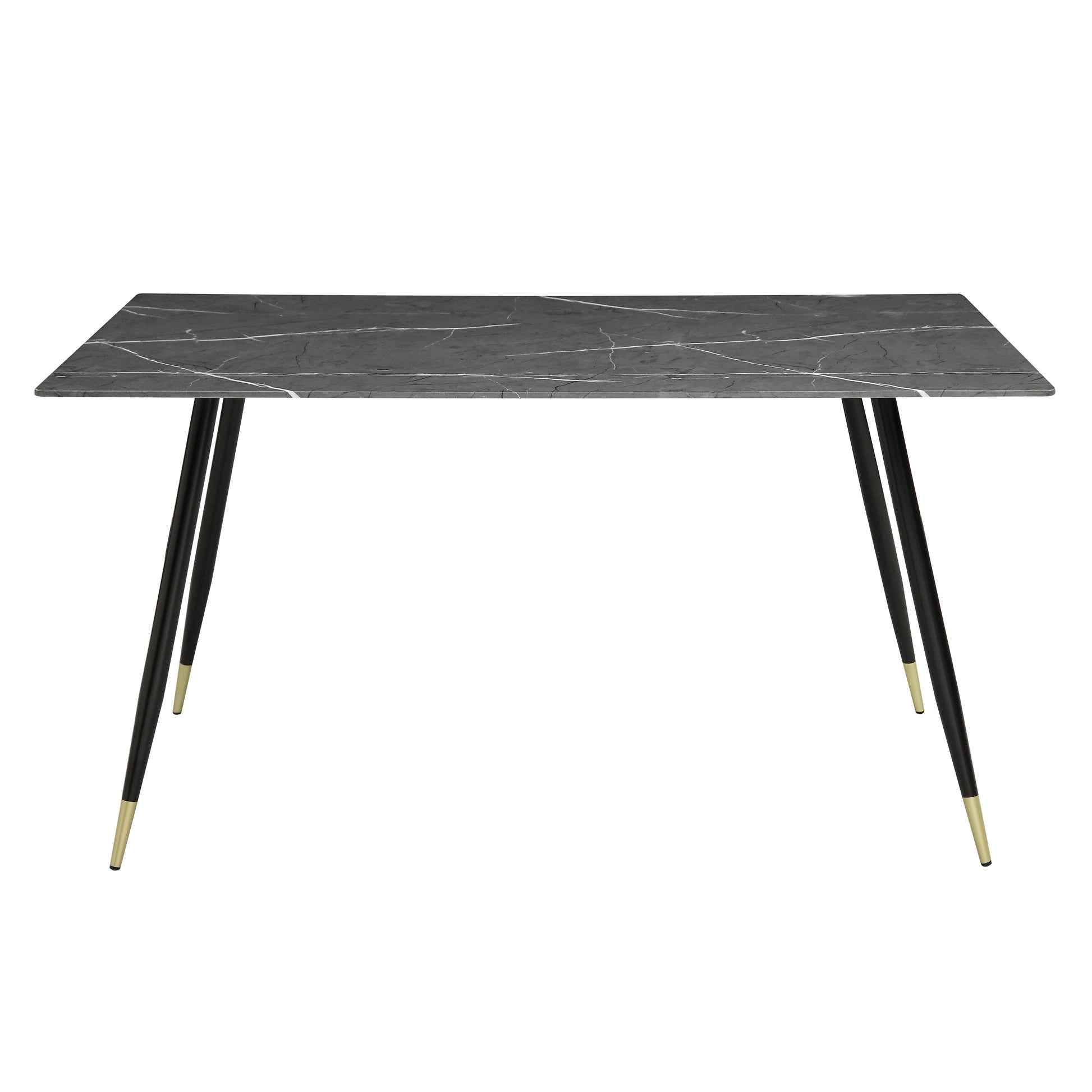 Comprised of classic elements of modern design, the Clemente Collection blends clean lines, and complementing color, with hints of refined sophistication to create a table for your casual dining room. Gray marble-print tempered glass is perched atop black metal legs, their tips capped with gold-finished metal accent.