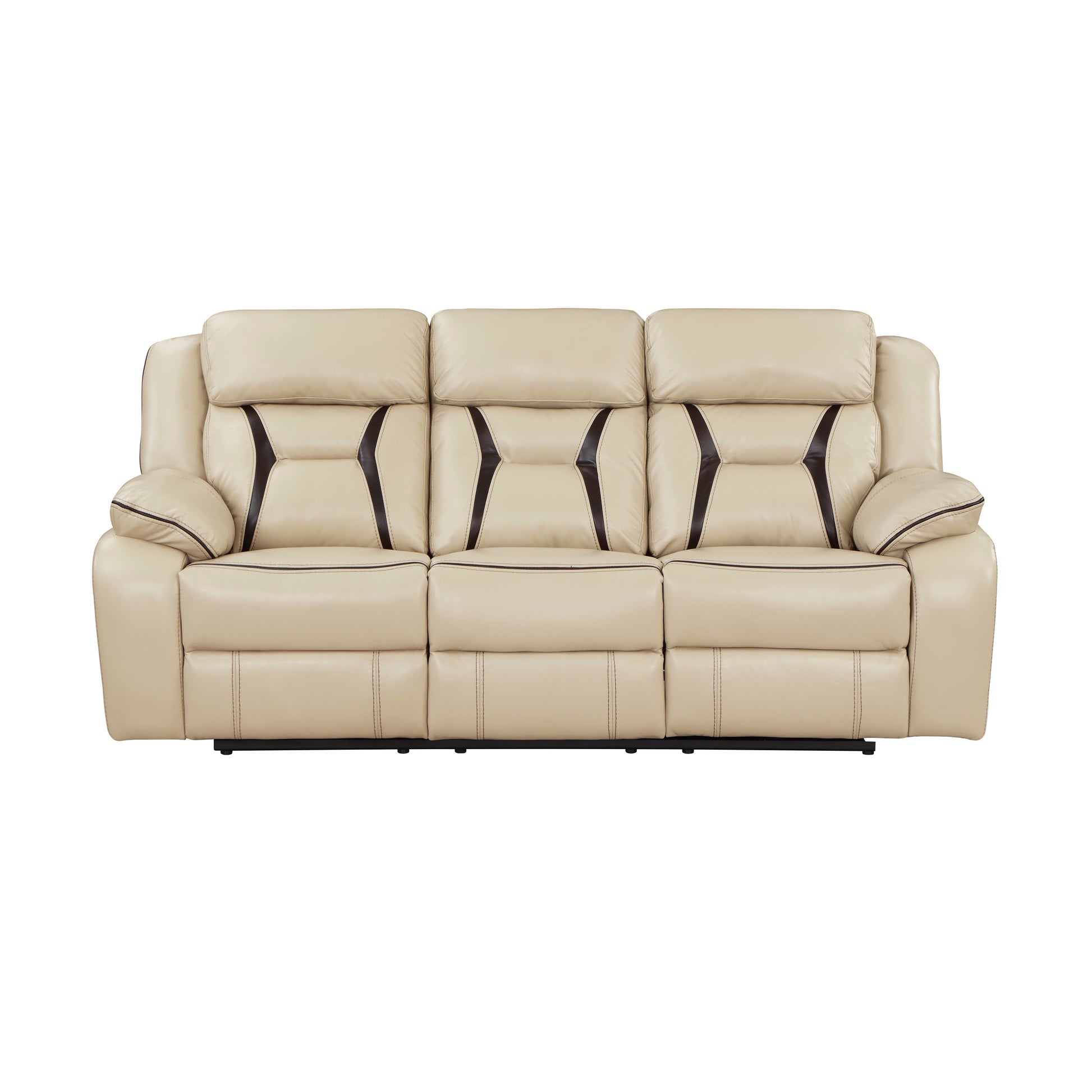 Ultra-modern design combined with convenient function makes the Amite Collection a stylish addition to your contemporary home. Beige premium faux leather upholstery is perfectly complemented by dark brown accenting on the seatbacks, seats, and arms of the sofa providing contrast and definition to the profile of the collection. With the push of the power reclining mechanism, the recliners ease to the prone position. Providing additional function is the side-mounted USB port on the recliners, providing quick access to your electronic device as it charges.