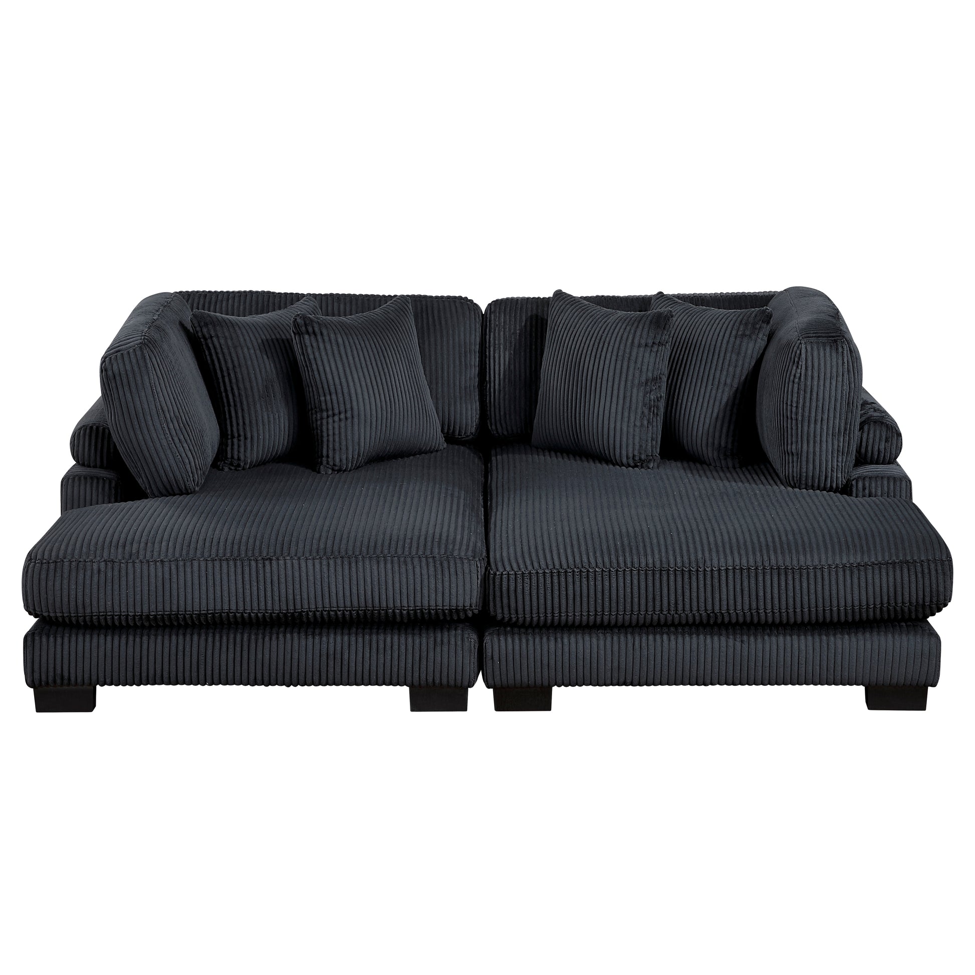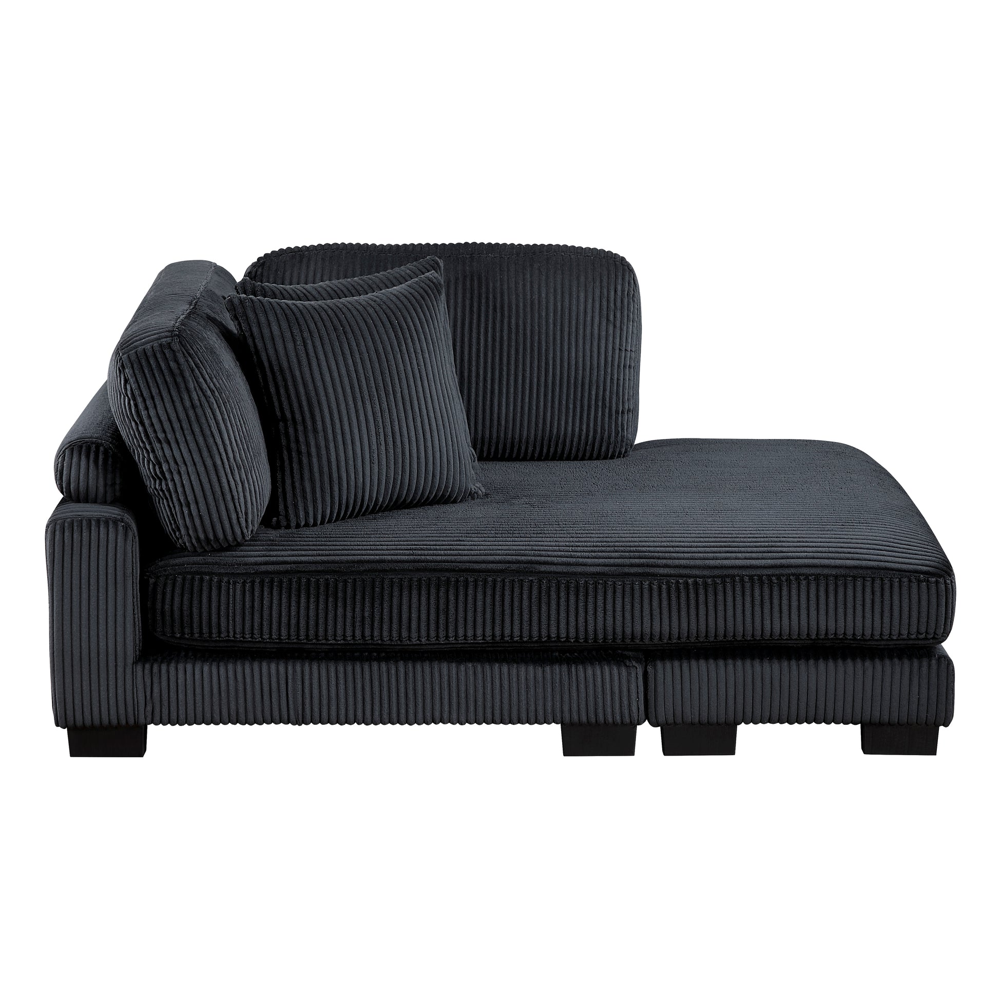 Configurable to your available space, the Traverse Collection allows for the addition and detachment of pieces for a customized seating experience. The 2-piece sectional configuration consists of two chaises. The black corduroy fabric upholstery creates a plush expanse for a soft touch experience.