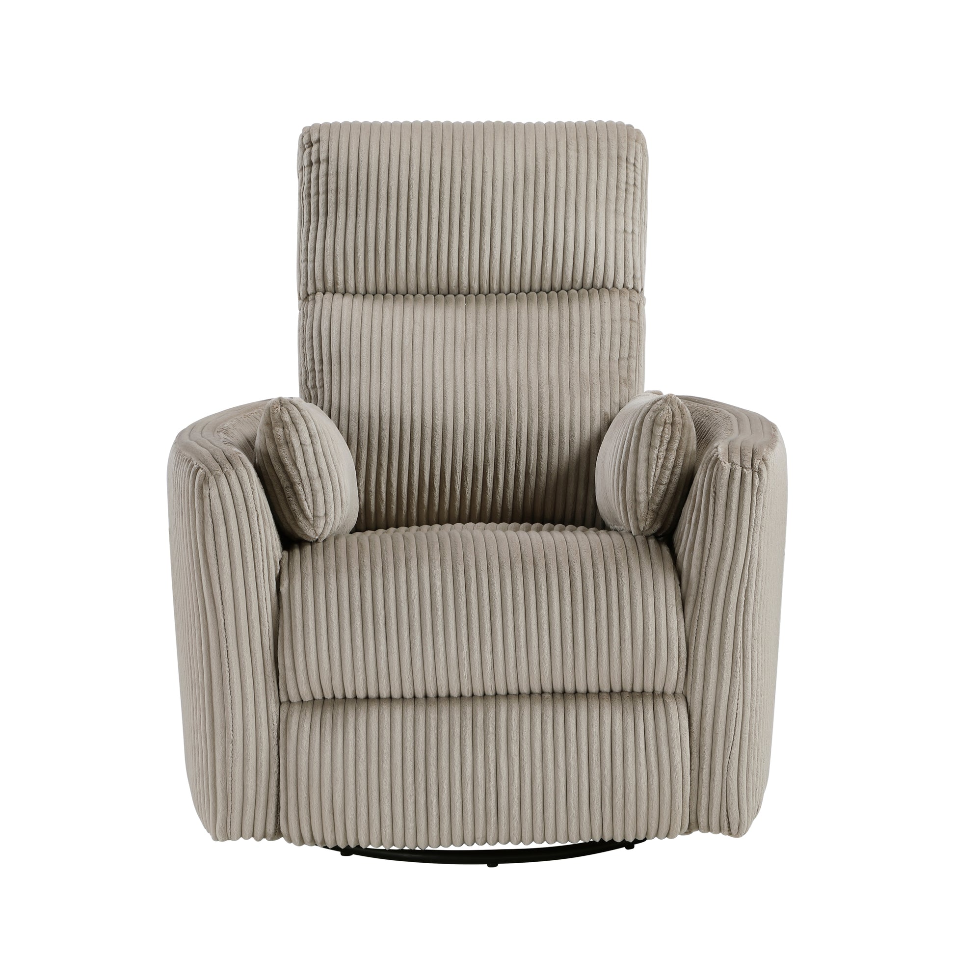 Enjoy the ultimate comfort with this swivel glider reclining chair, a perfect blend of style, functionality, and relaxation. Upholstered in soft, textured corduroy fabric, this recliner offers a cozy seating experience while adding a touch of modern sophistication to any room. The chair features a 360-degree swivel, gentle gliding motion, and an easy-to-use reclining function, making it ideal for living rooms, bedrooms, or any space where relaxation is a priority. Designed for both style and comfort, this chair combines plush cushioning with smooth reclining mechanisms, allowing you to fully recline and relax. The taupe color and corduroy fabric texture make it a versatile choice that complements a variety of decor styles.