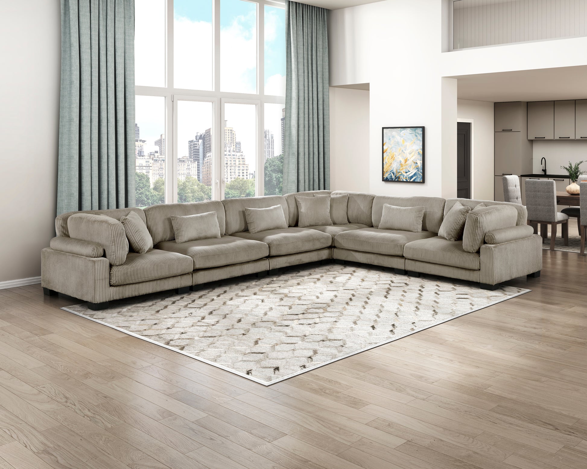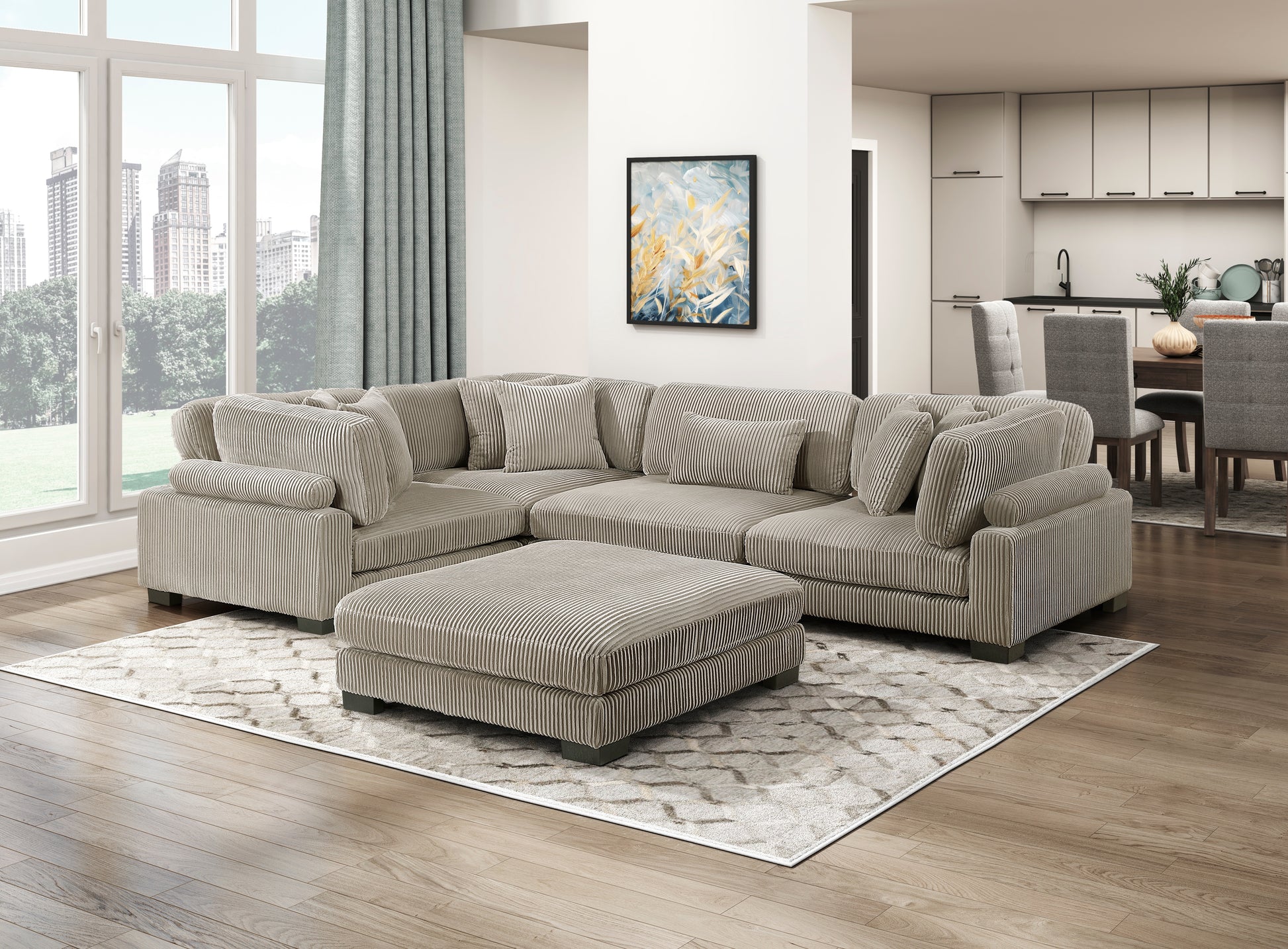 Configurable to your available space, the Traverse Collection allows for the addition and detachment of pieces for a customized seating experience. The taupe corduroy fabric upholstery creates a plush expanse for a soft touch experience. The armless chair features a lumbar pillow, and reversible cushions.