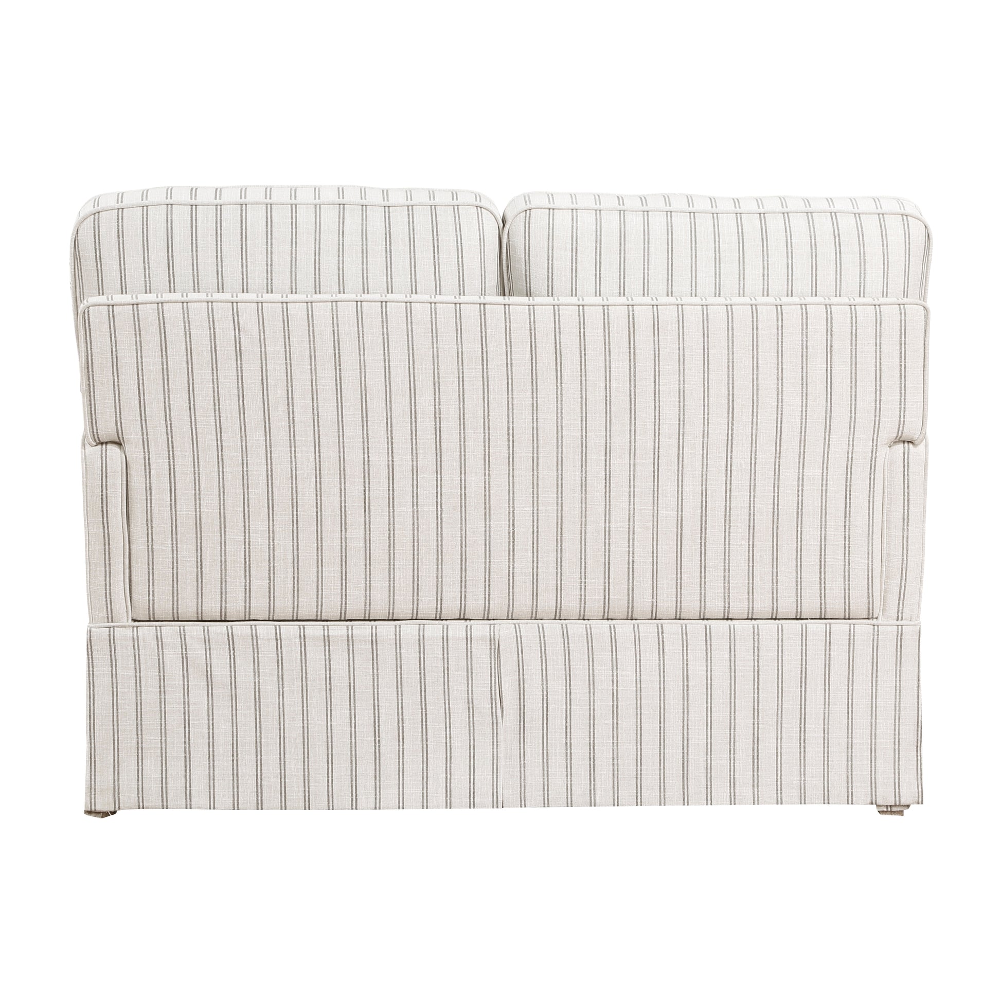 A refreshing addition to your living room comes in the form of the Hampstead Collection. An elegant pairing of classic designs creates a unique seating arrangement whether arranged together or as individual accents to your home’s décor. Covering the love seat is gray and white stripe textured fabric upholstery, its pattern and hue a neutral complement to your space. Tailored lines provide classic detail to love seat, while the slipcover styling lends a casual vibe.