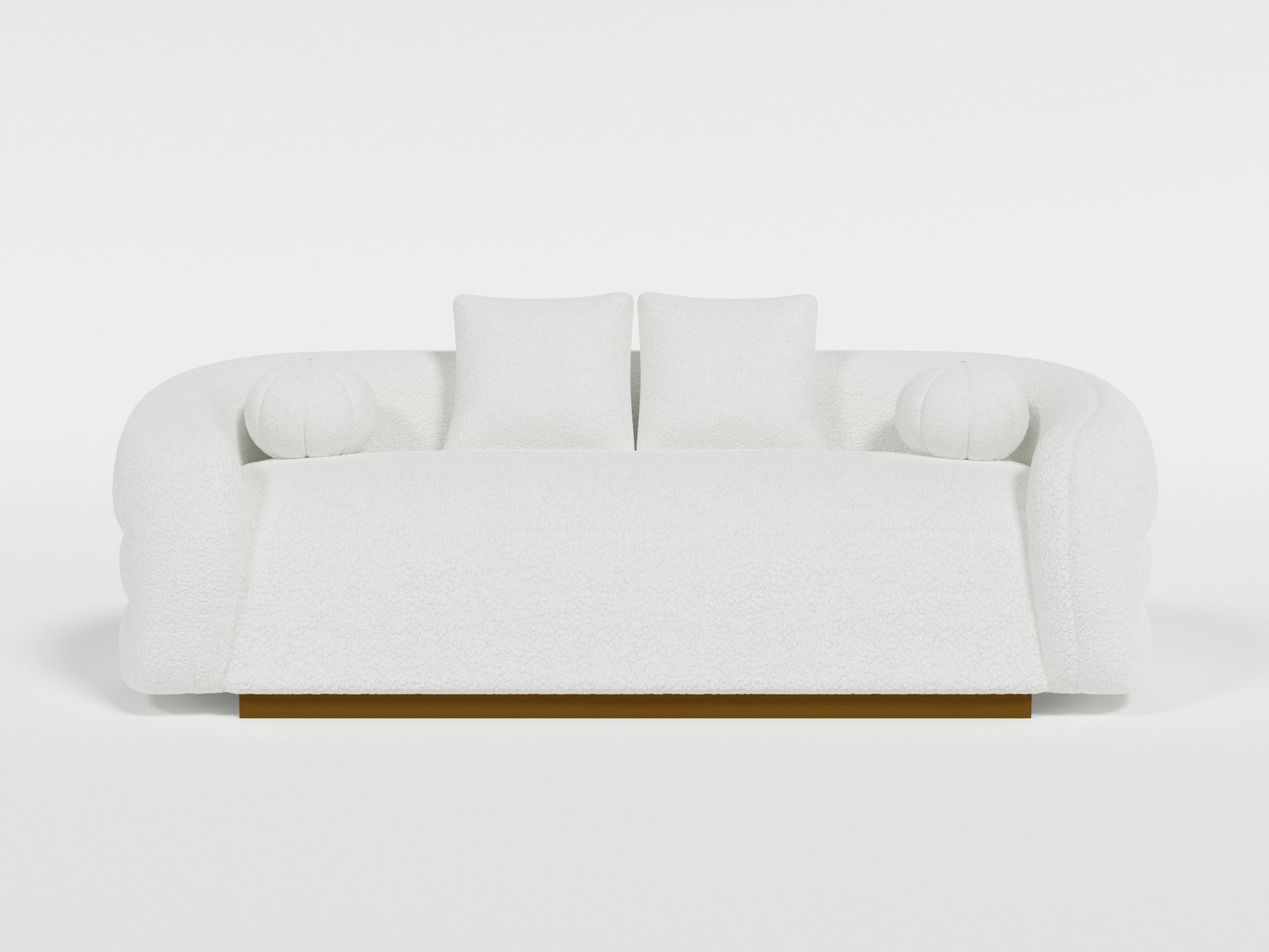 Upgrade your living space with the luxurious Novella Sherpa Sofa, perfect for adding comfort and modern style. The soft Sherpa fabric upholstery ensures a cozy seating experience, while the attached back and seat cushions provide effortless comfort. The sturdy solid wood base in a sleek gold finish adds a touch of elegance, making this sofa a standout piece in any room. Complete with two matching pillows, this sofa blends style and comfort seamlessly.