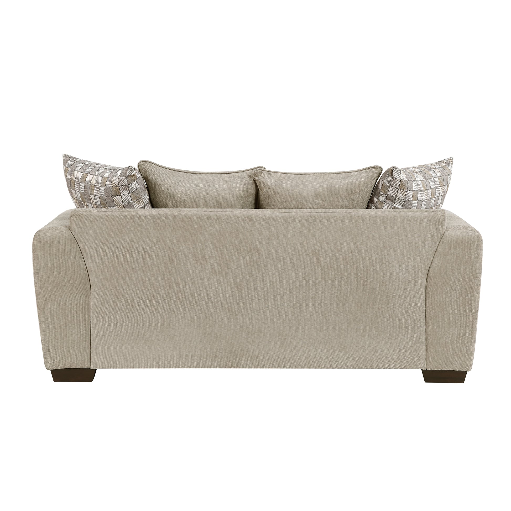 Designed for the transitional style that defines your home’s décor, the Silverthorne Collection pairs classic accents with a refined profile. The contoured arms of the love seat feature oversized nailhead trim. Light brown chenille fabric upholstery covers the seating, and loose back pillows, its neutral hue complemented by the accompanying geometric toss pillows. Solid wood feet support the collection.