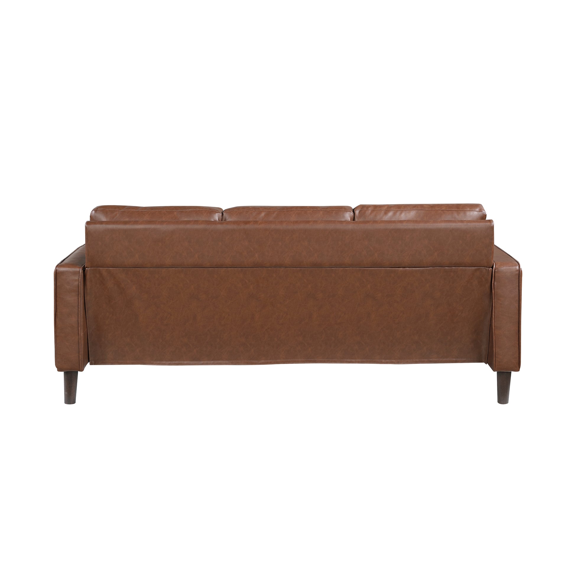 The elements that define modern style create a timeless look for your home with the addition of the Malcolm Collection. Track-style arms and defining welt lend a tailored aesthetic to the clean lines of the sofa making the piece well-suited for modern, transitional, rustic, or industrial inspired spaces. The collection is covered in chocolate faux leather upholstery further lending to the decorative versatility of this modern-classic offering.