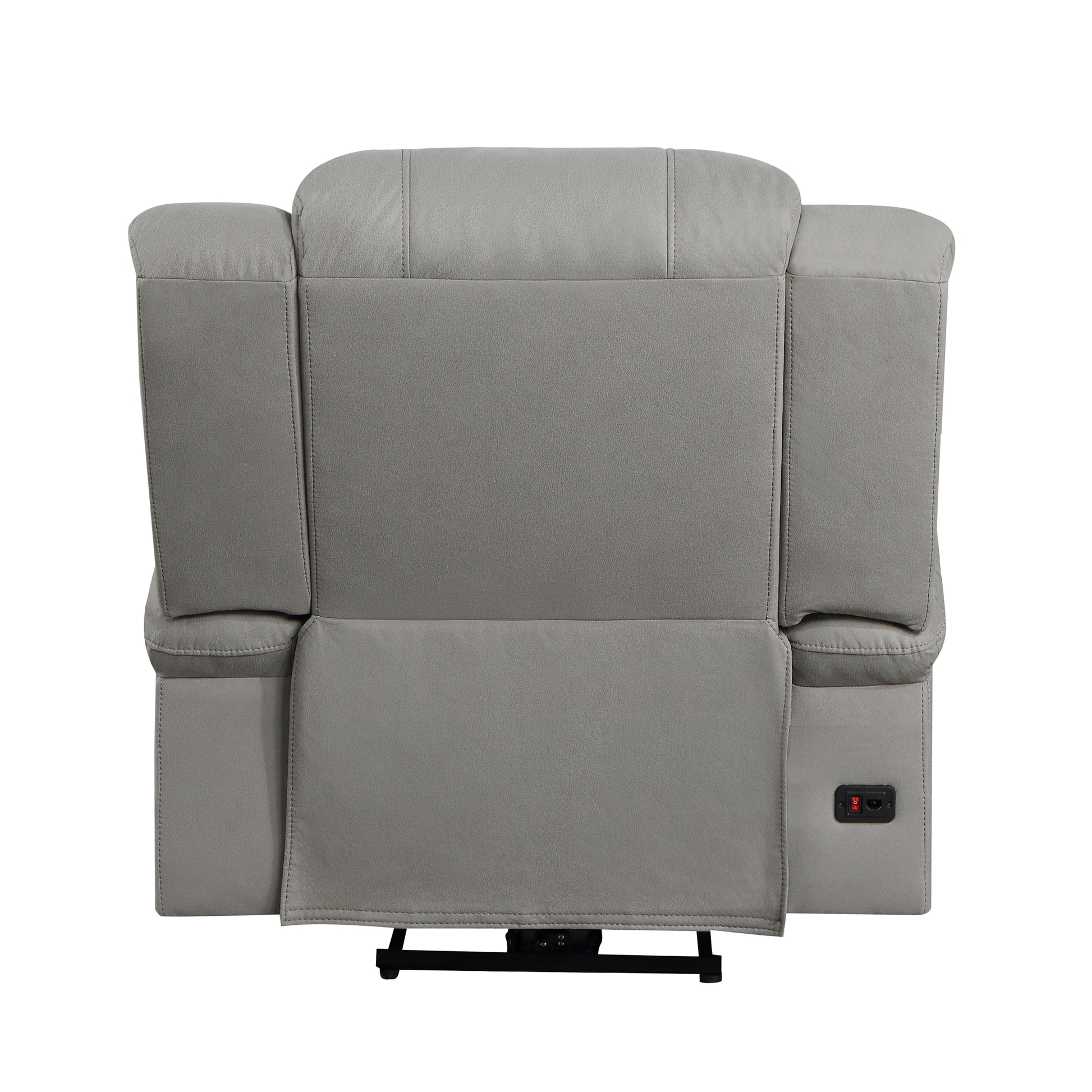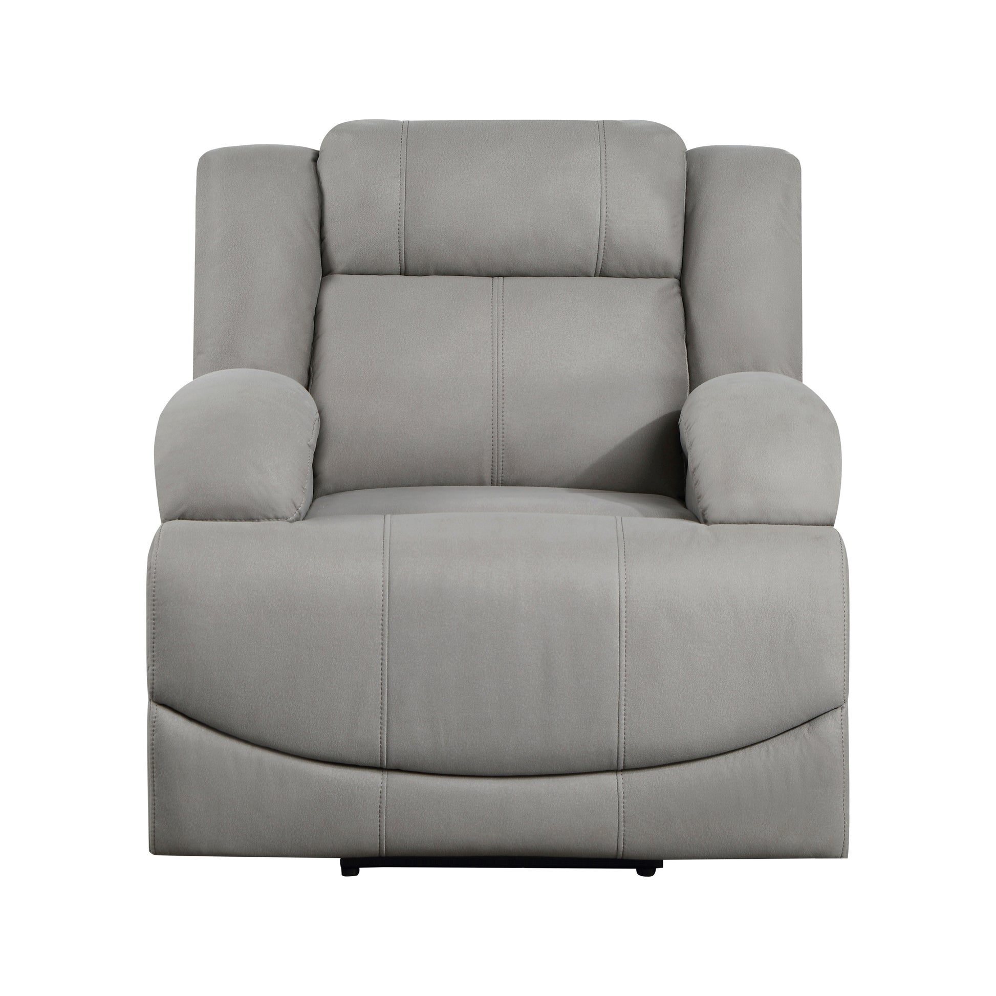 Complementing your living room’s transitional style is the Camryn Collection. The power motion mechanism of the chair allows for ease of motion when going from seated to reclined. Contoured stitching defines the seating of the group while the gray-hued polished microfiber upholstery that covers the collection is a subtle pop of color for your living room’s décor.