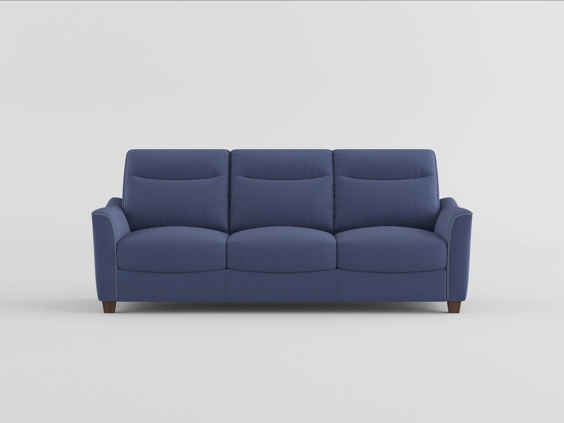 Pairing a bold hue with bold lines creates the modern look of the Harstad Collection. Dark blue fabric upholstery covers this contemporary selection, with a stroke of light blue accenting the outer face of the sofa's low-profile flared arms. Curved detailing provides prominent definition to the seat backs and front rails of the sofa.