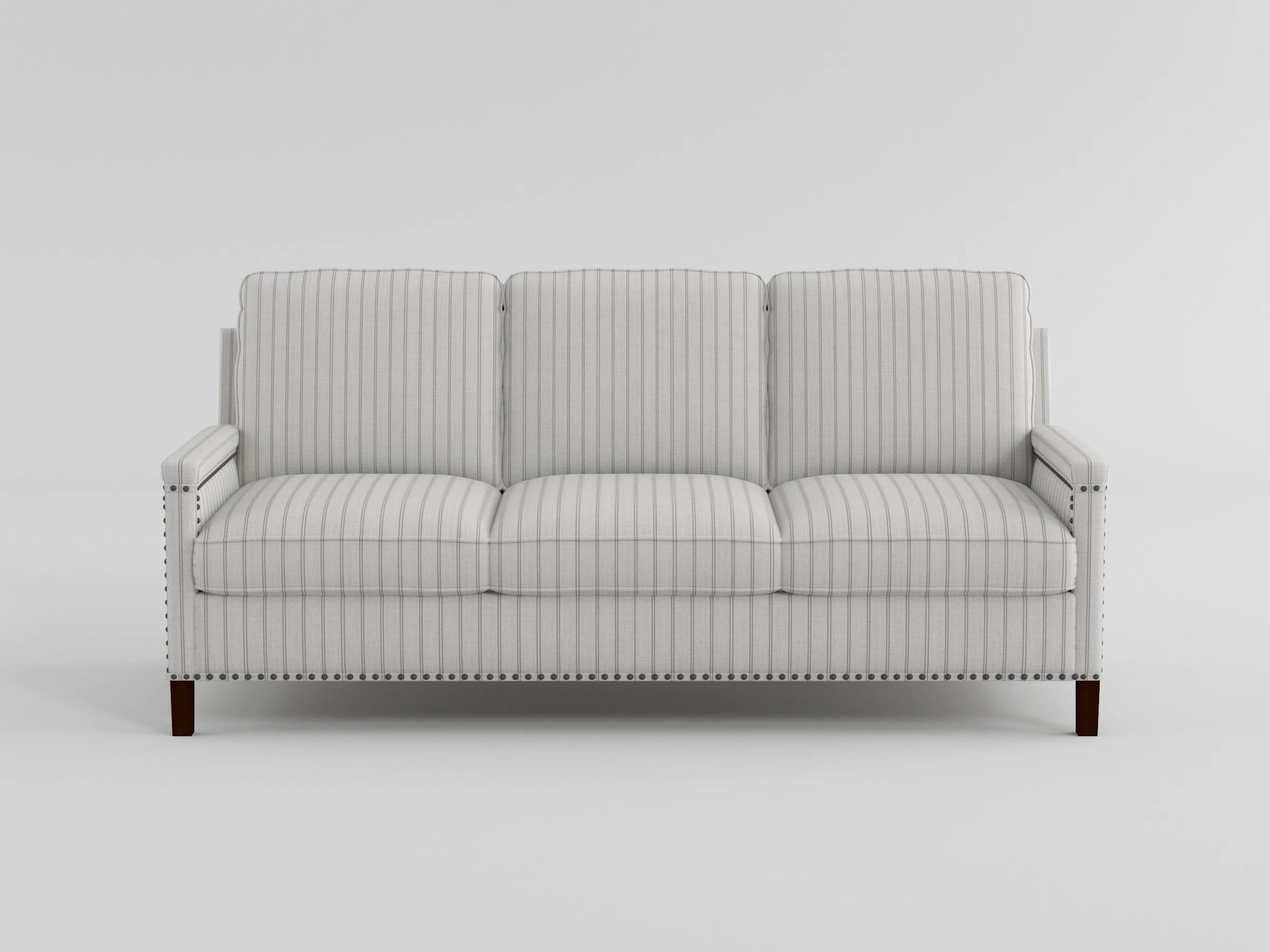 Traditional accents abound in the design of the Landrum Collection, their understated elegance making for classic addition to your living room. Nailhead trim and dark brown finished solid wood legs complement the striped textured fabric that covers the sofa. The reversible backs and seat cushions of the seating group are perfect for your active home.