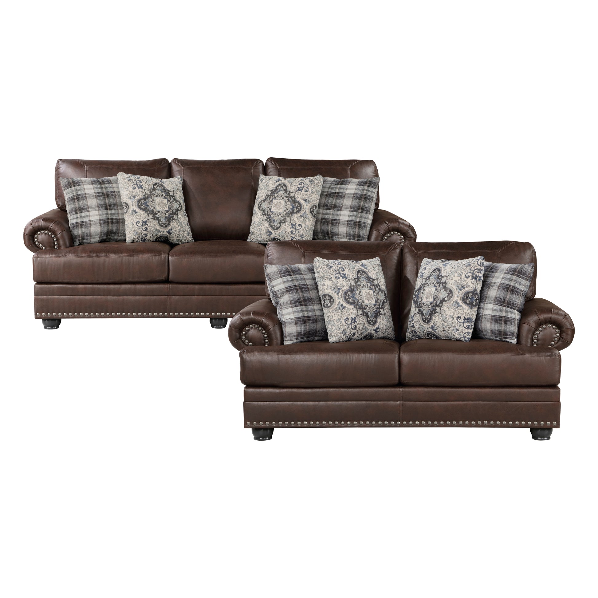 With a refined look that is steeped in traditional design, the Franklin Collection provides a timeless elegance to your living room. Dark brown polished microfiber covers the frame of the collection while traditional rolled arms, and nailhead trim provide classic detail to profile of the seating group. Contrasting toss pillows solidify the look, the floral and plaid designs an elegant pairing to complement your space.