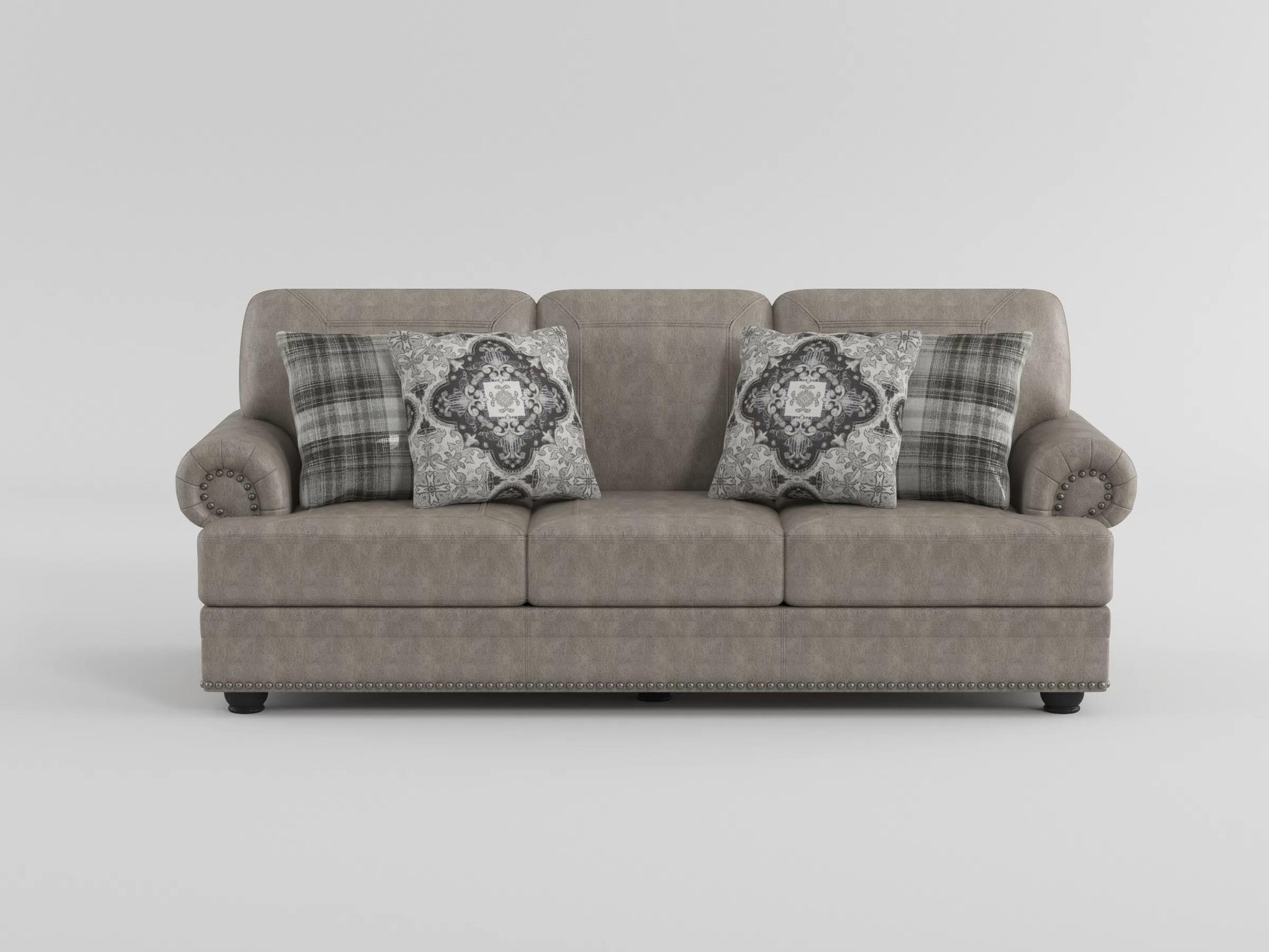 With a refined look that is steeped in traditional design, the Franklin Collection provides a timeless elegance to your living room. Mushroom-hued polished microfiber covers the frame of the sofa while traditional rolled arms, and nailhead trim provide classic detail to its profile. Contrasting toss pillows solidify the look, the floral and plaid designs an elegant pairing to complement your space.