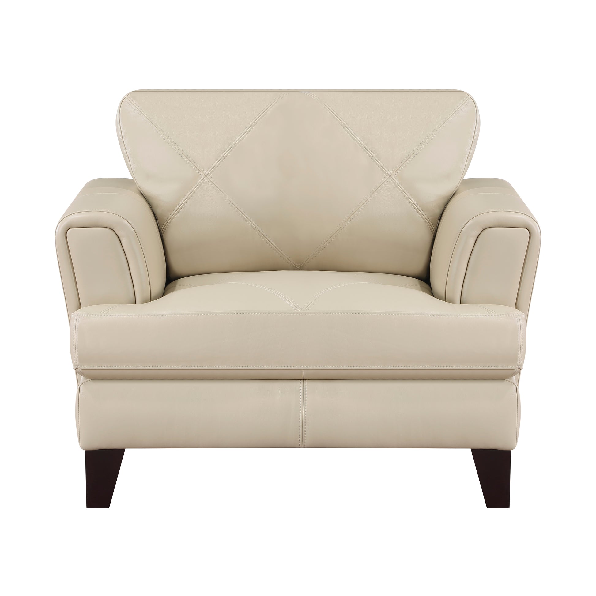 With subtle inspiration from modern European design, the contemporary style of the Thierry Collection pairs understated elegance with defining lines resulting in a sophisticated look for your living room. The cream hue of the chair’s top grain leather covering – with split-grain leather match – is a neutral decorative selection for your space. Geometric stitching accents the seats of the chair, while the flare of the track arm completes the modern profile.