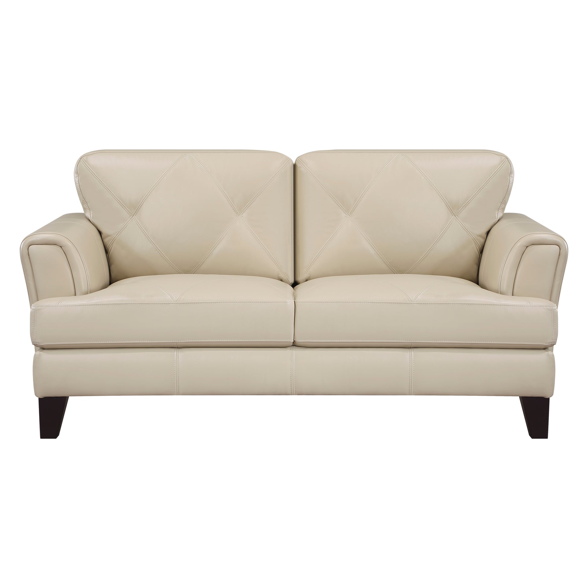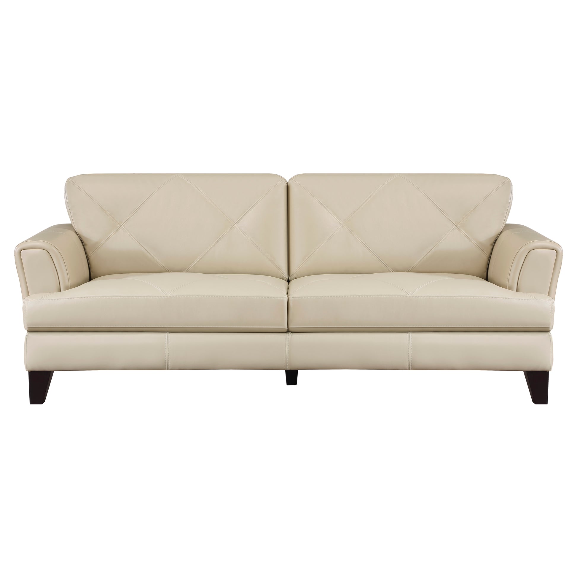 With subtle inspiration from modern European design, the contemporary style of the Thierry Collection pairs understated elegance with defining lines resulting in a sophisticated look for your living room. The cream hue of the collection’s top grain leather covering – with split-grain leather match – is a neutral decorative selection for your space. Geometric stitching accents the seats of the sofa, love seat and chair, while the flare of the track arm completes the modern profile.