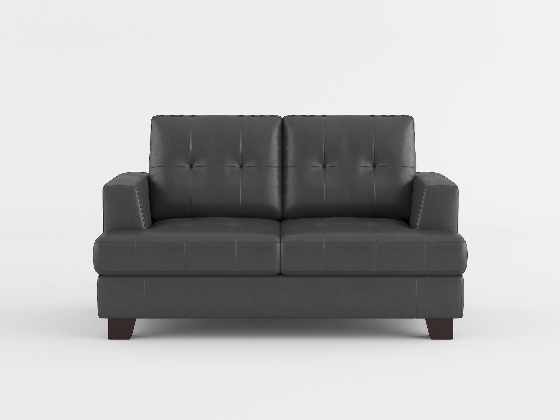 With a profile that hints at modern design and a color palette that serves as a neutral accent to your home, the Hinsall Collection will be a welcome and comfortable addition to your living room. Premium faux leather upholstery covers this love seat and is available in gray for versatile decorative styling. Track arms and contour stitch tufting further lend to the modern look.