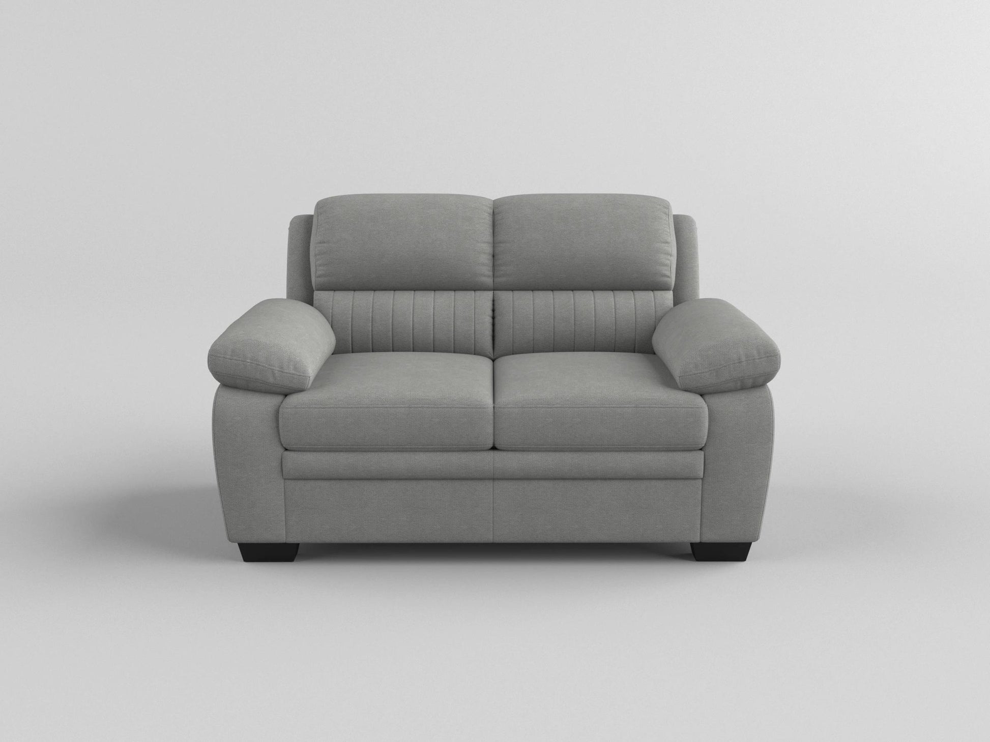 A modern profile serves to lend visual contrast and support to the plush seating and pillow-top arms of the Holleman Collection. The dark gray textured fabric cover acts as a neutral palette for your decorative preferences. Channel tufting accents the lower seatback of the love seat providing subtle accent to the collection.