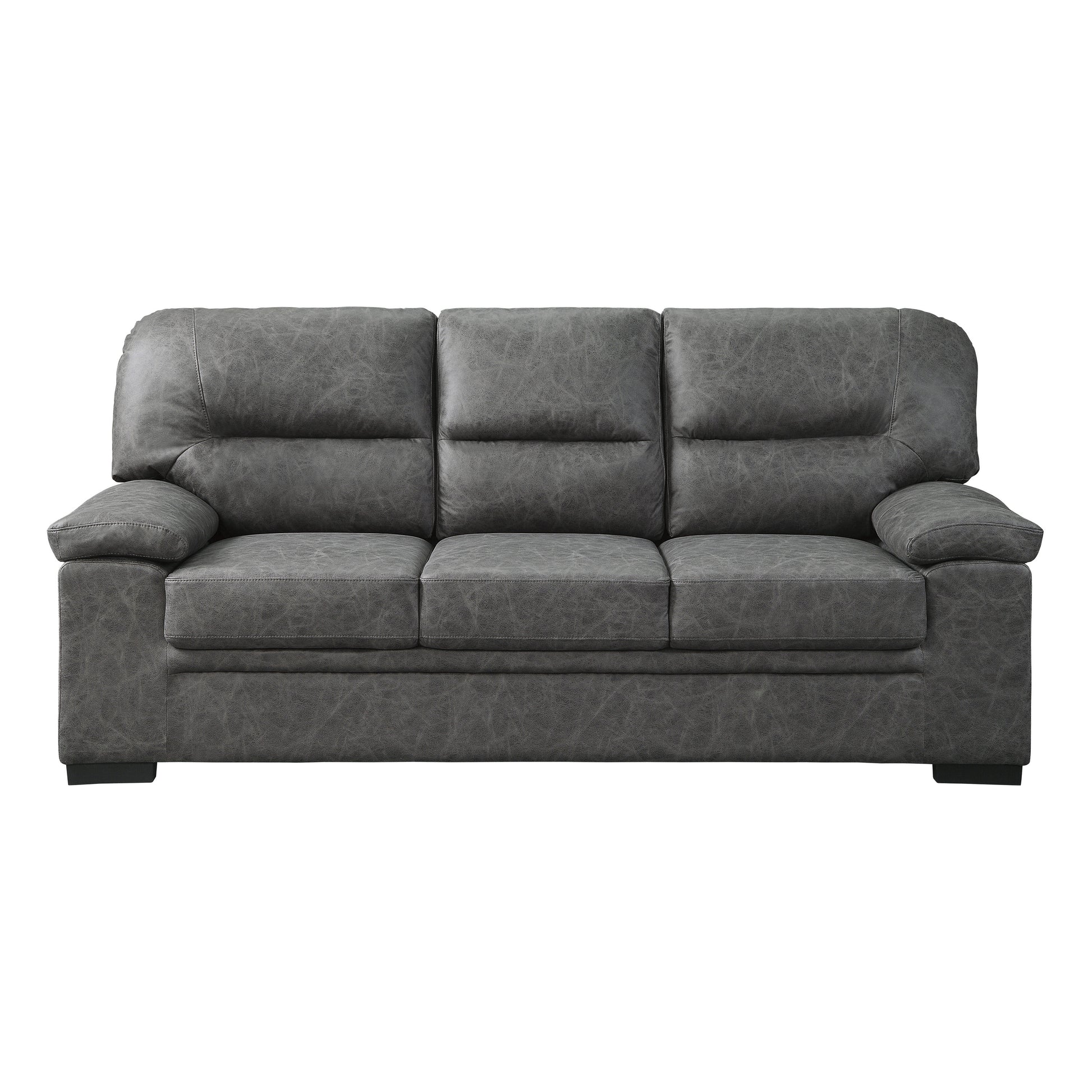 Comfort and versatility merge with the addition of the Michigan Collection. The collection is covered in dark gray polished microfiber. The transitional profile of this seating group is complemented by plush, contoured tufting and pillowtop arms.