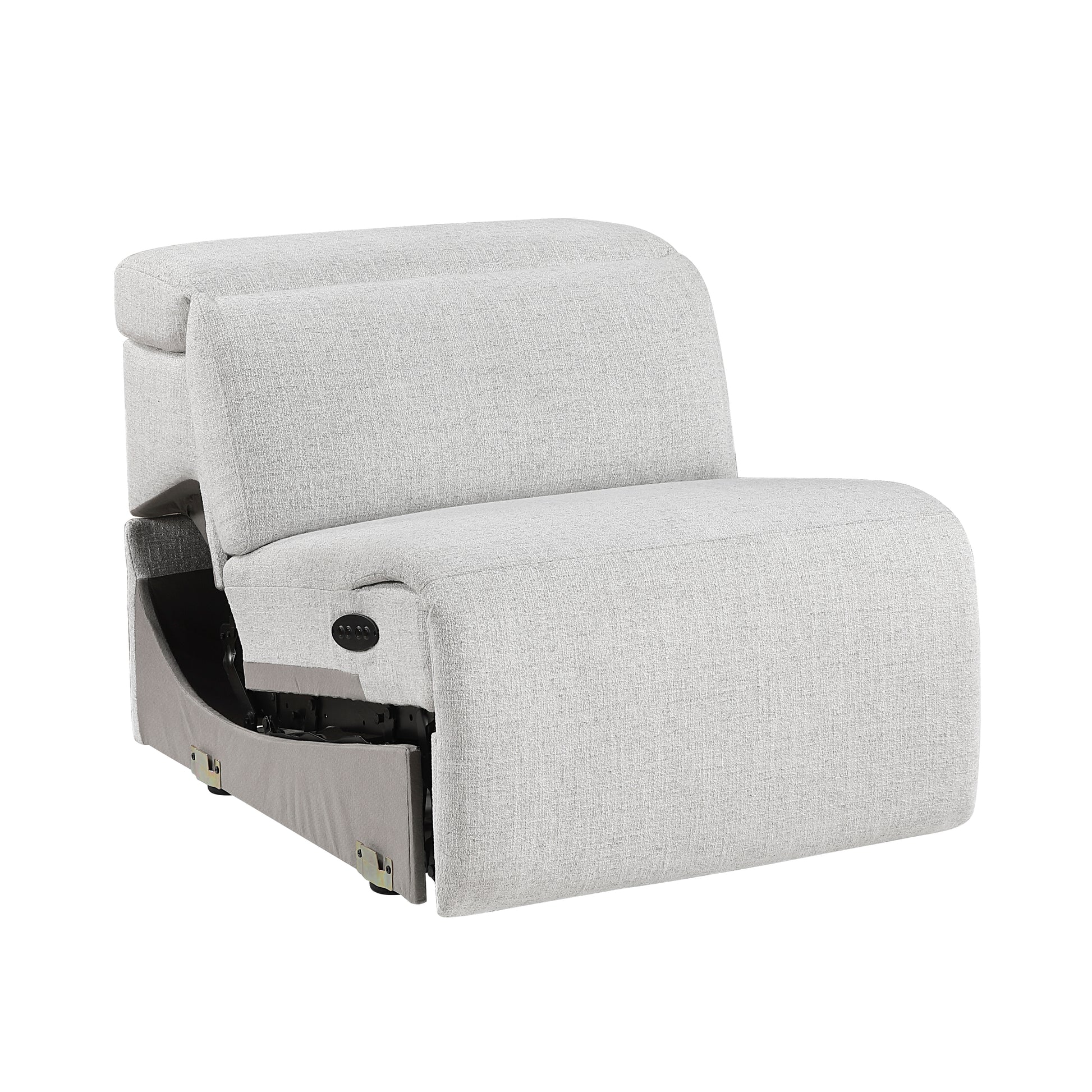 Experience unparalleled comfort and personalized relaxation with this power reclining armless chair. This modern chair, upholstered in soft, durable chenille fabric, seamlessly integrates into your modular living space. With one-touch power control, you can effortlessly adjust the reclining position and power headrest to find your perfect lounging angle. The armless design enhances versatility, while the robust solid wood and plywood frame, reinforced with metal and high-density foam padding over pocket coils, ensures lasting durability and support for up to 300lbs.