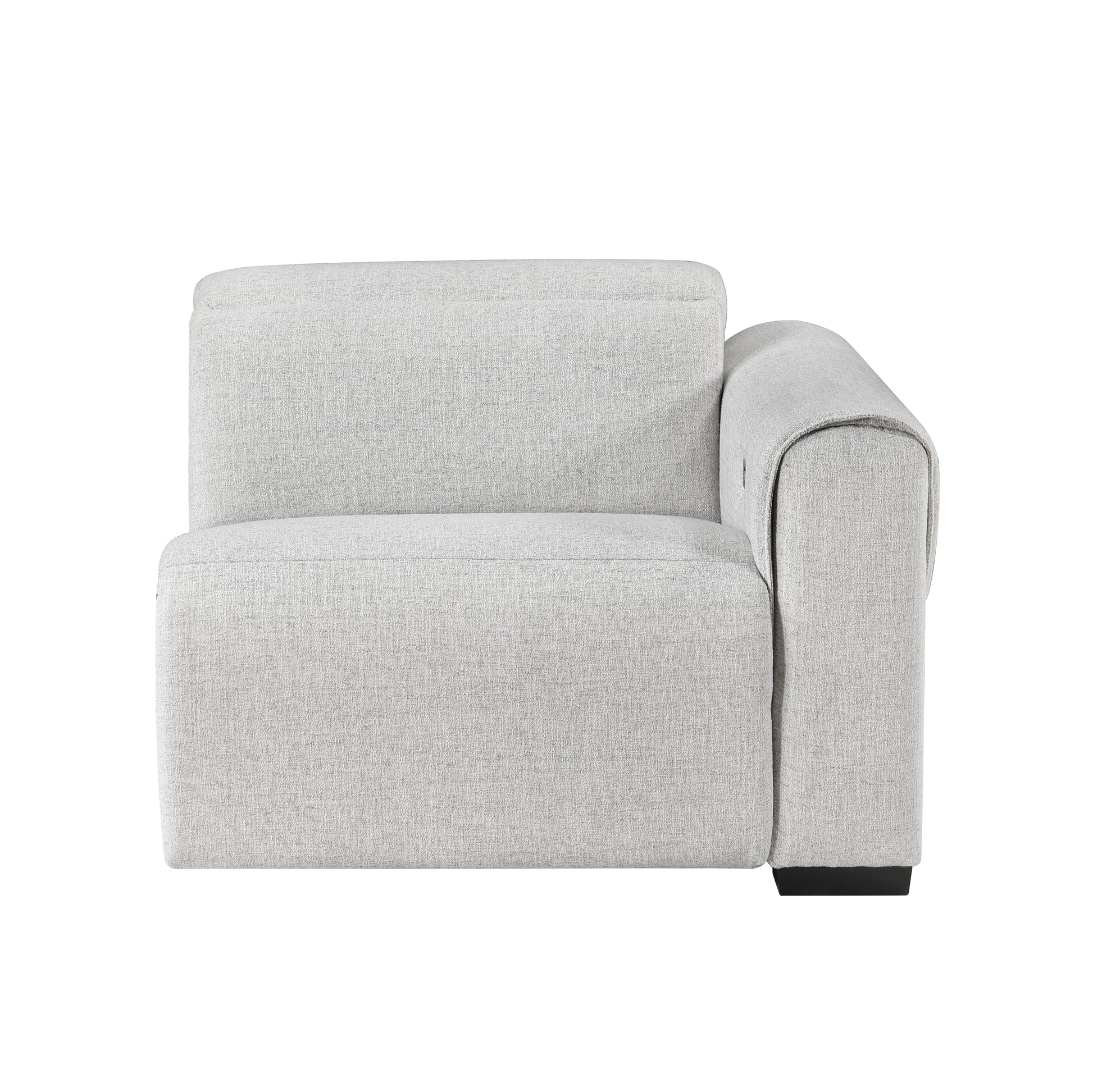 Indulge in the ultimate relaxation experience with this power right side reclining chair with power headrest. This reclining chair, upholstered in soft, durable chenille fabric, seamlessly integrates into your modular living space. With one-touch power control, you can effortlessly adjust the reclining position and power headrest to find your perfect lounging angle. Stay connected and powered up with built-in power outlets and charging ports, keeping your devices within easy reach. The robust solid wood and plywood frame, reinforced with metal and high-density foam padding over pocket coils, ensures lasting durability and support for up to 300lbs.