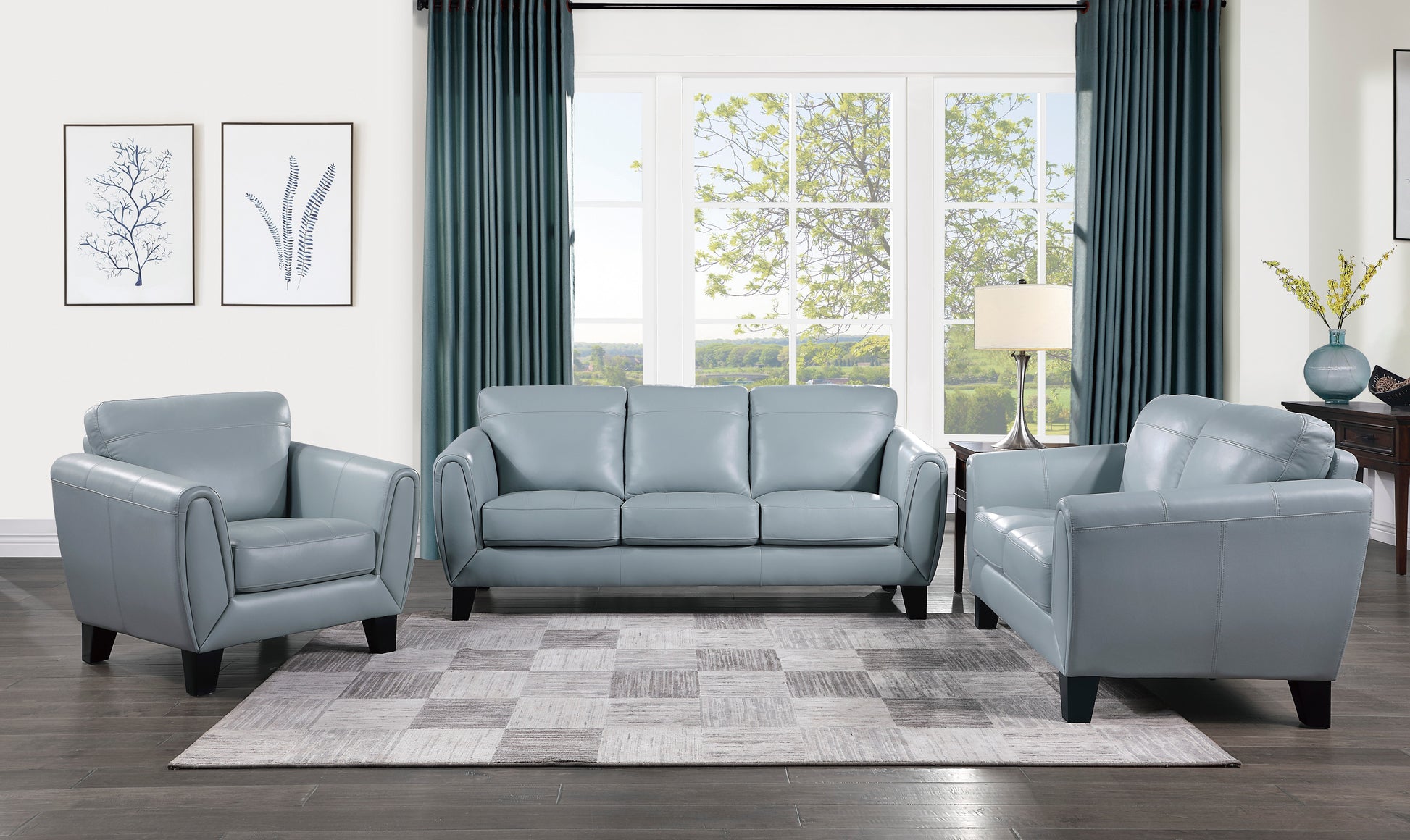 The subtle retro look of the Spivey Collection will pair with modern aesthetic of your home’s décor, creating a classically cool look that is sure to turn heads. The streamlined profile of the chair is covered in an aqua hued top grain leather. Defining detail comes in the form of the arm’s contour stitching and the cushioned wrap of the chair’s arms.