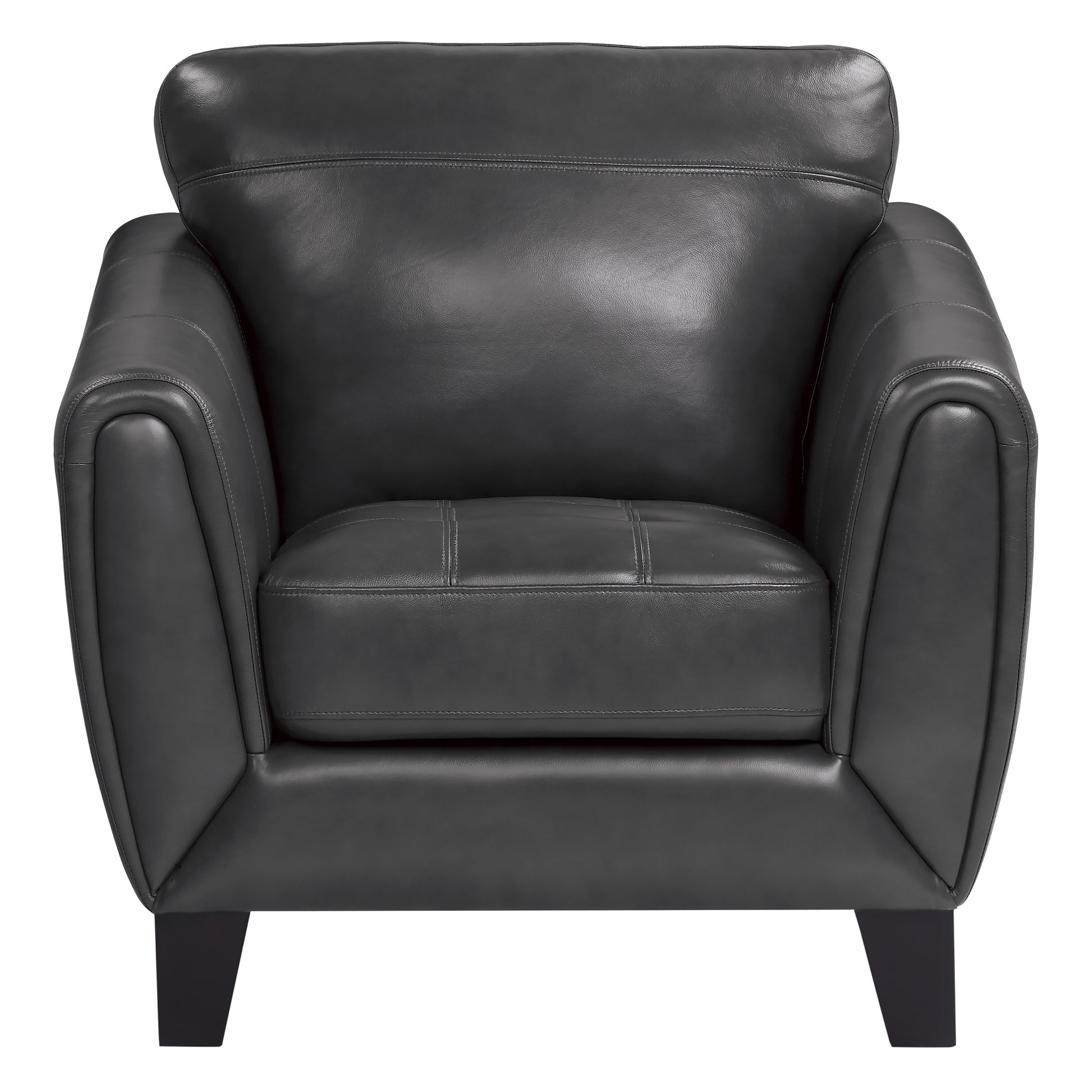 The subtle retro look of the Spivey Collection will pair with modern aesthetic of your home’s décor, creating a classically cool look that is sure to turn heads. The streamlined profile of the chair is covered in an dark gray hued top grain leather. Defining detail comes in the form of the arm’s contour stitching and the cushioned wrap of the chair’s arms.