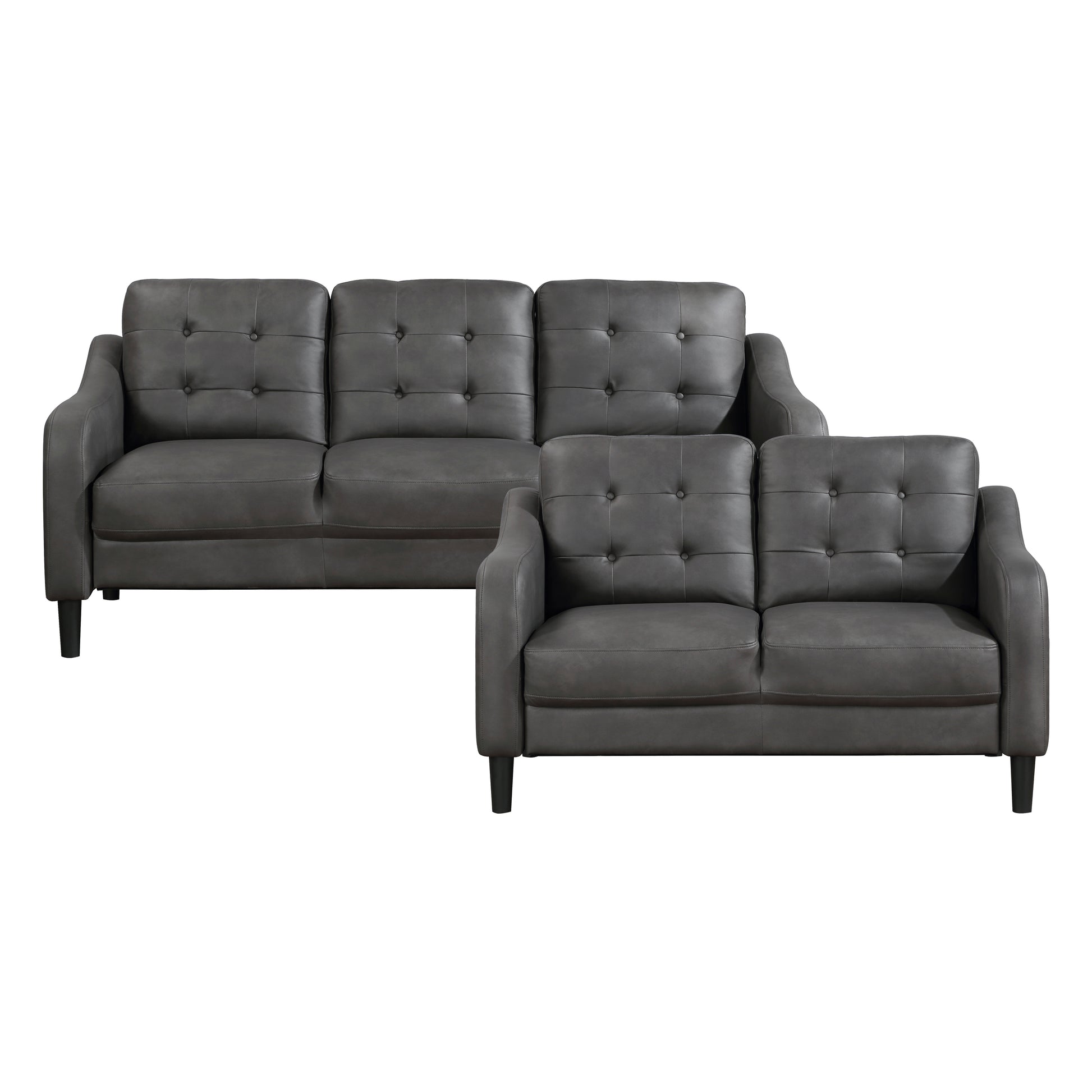 A versatile look for your casual living room comes in the form of the Mallory Collection. The button tufted seat back and contoured arms lend traditional accent to this transitional seating group, with the optional brown or gray polished microfiber upholstery furthering the decorative versatility of the collection.