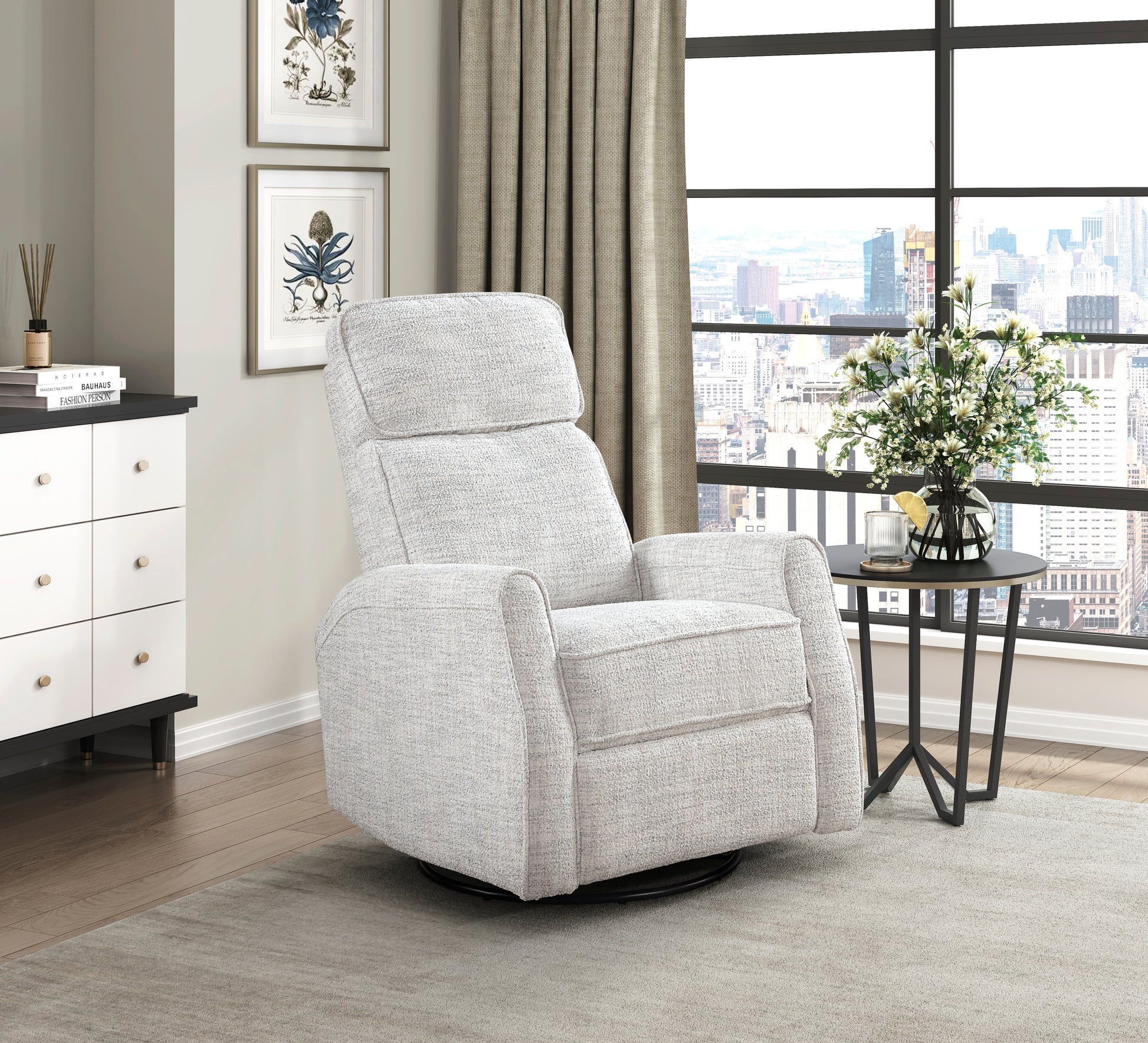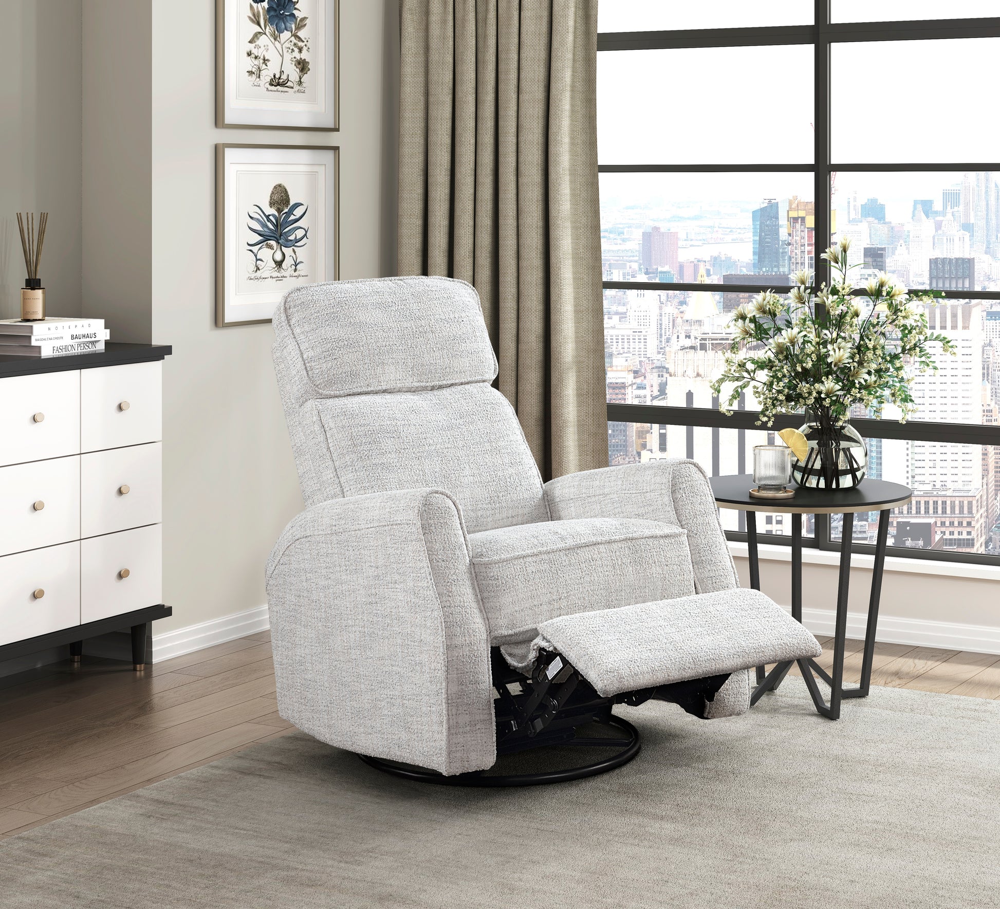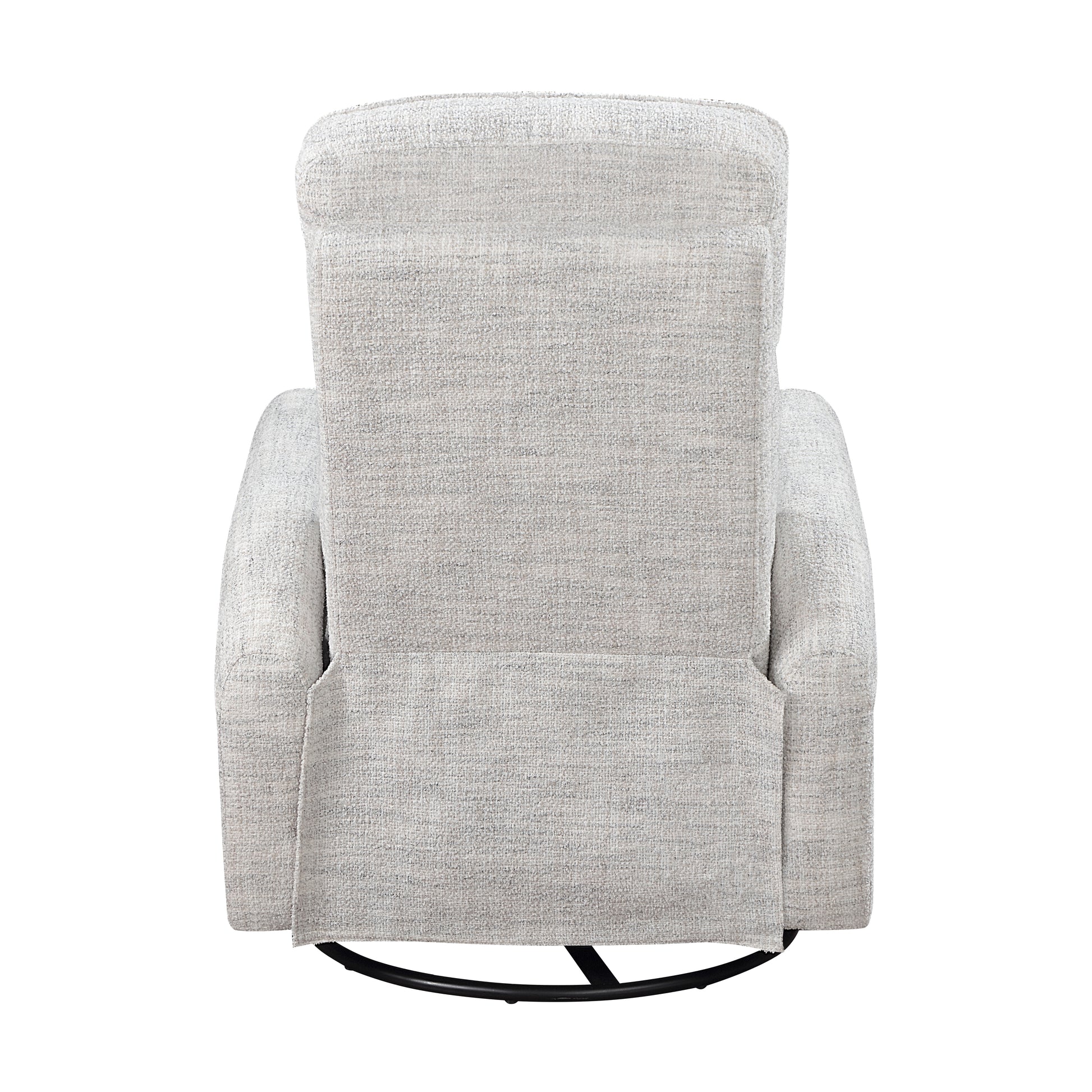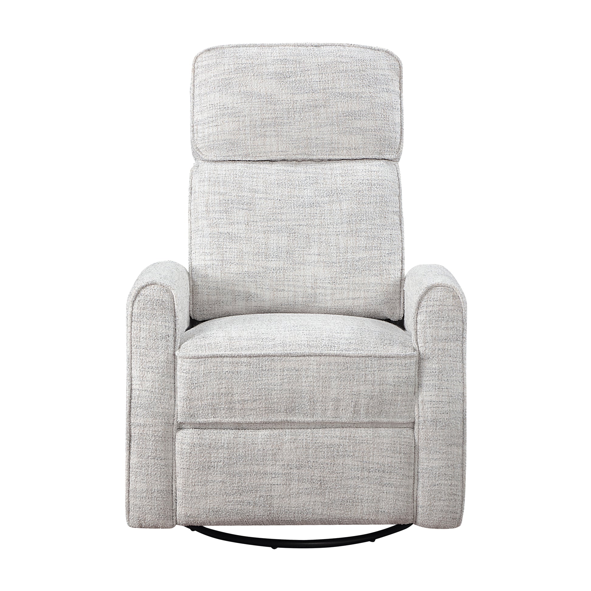 Relax in style with this pull handle reclining swivel glider recliner chair, the perfect blend of comfort, functionality, and modern design. Upholstered in a soft, neutral fabric that complements any decor, this chair offers versatile seating for your living room, bedroom, or office. With an easy-to-use pull handle, you can smoothly recline to your desired position, while the 360-degree swivel and gentle gliding motion add to your relaxation options, allowing you to enjoy movement in any direction.
