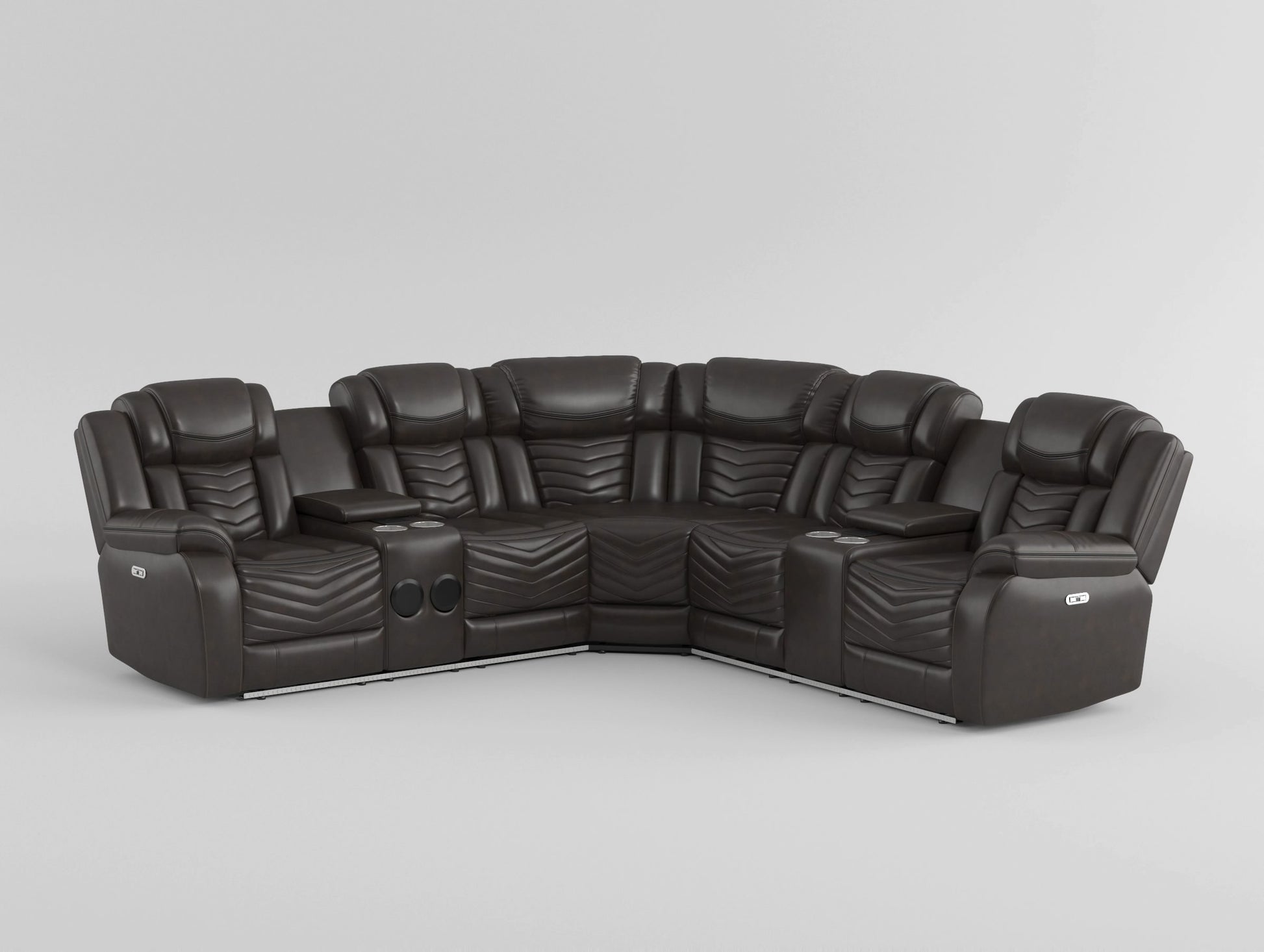 9508DB*SCPW - (3)3-Piece Power Reclining Sectional with Consoles, Speakers, Subwoofer and LED Lighting