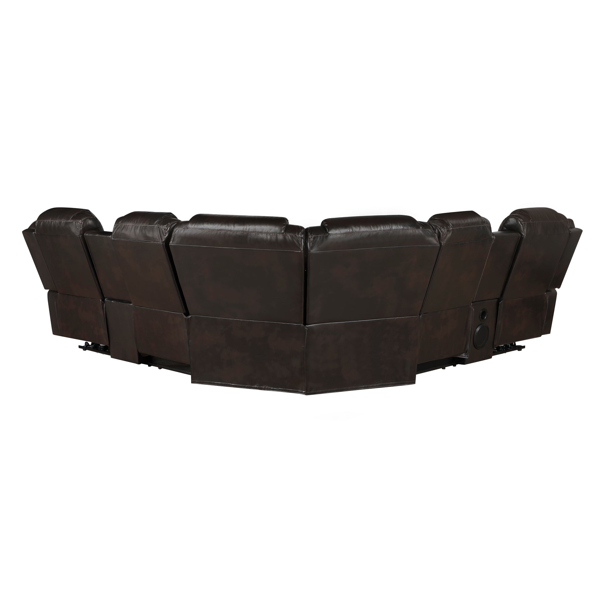 Transform your entertainment space with this 3-piece power reclining sectional, designed for ultimate comfort, technology, and cinematic luxury. Featuring power reclining seats, built-in Bluetooth speakers and subwoofer, and vibrant LED lighting, this sectional delivers an immersive home theater experience like no other. The spacious seating is upholstered in premium faux leather, offering a sleek and durable design that complements any modern living space. Integrated center consoles with cup holders and storage compartments keep essentials within reach, while deeply cushioned seats and plush armrests provide superior comfort for hours of relaxation. Built with a sturdy metal seat frame and smooth reclining mechanism, this sectional ensures long-lasting durability and seamless operation, making it the perfect choice for family rooms, media rooms, or dedicated home theaters.