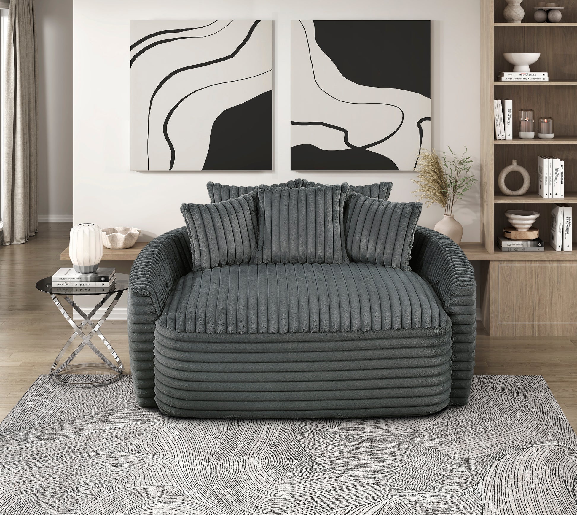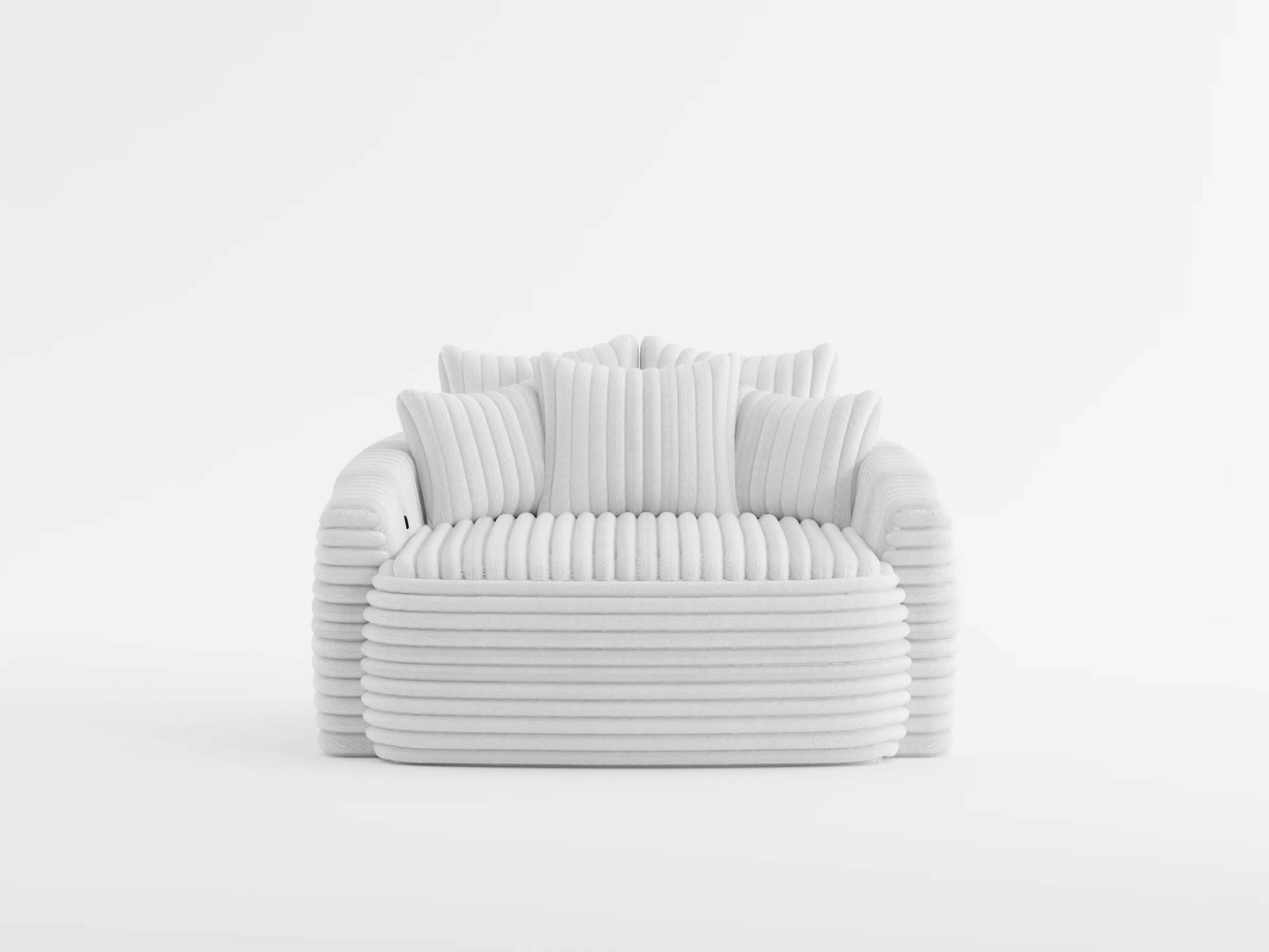Experience luxurious comfort and modern convenience with this oversized lounge chair, designed to provide a plush and inviting seating experience while keeping your devices charged. Featuring sumptuous channel-tufted upholstery and generously cushioned seating, this chair offers the perfect place to unwind, whether you're reading, watching TV, or relaxing after a long day. The integrated USB charging ports ensure your phone, tablet, or other devices stay powered without the hassle of extra cords. With its spacious design and matching accent pillows, this statement piece is ideal for living rooms, bedrooms, or media rooms, seamlessly combining style, functionality, and next-level comfort.