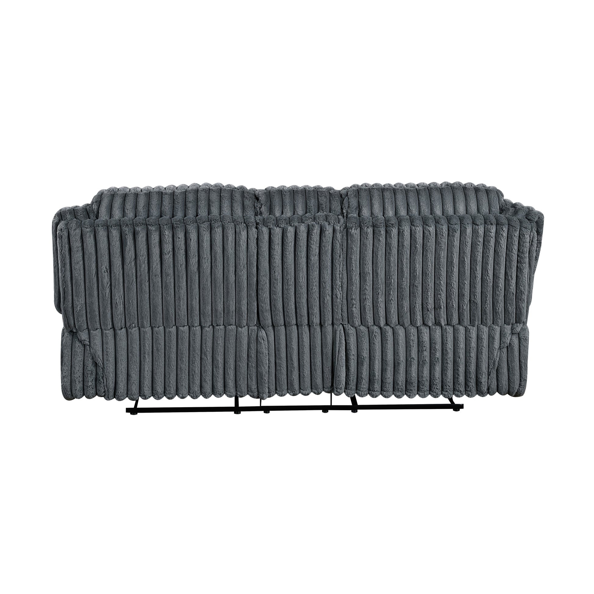 Upgrade your relaxation with this dual manual reclining loveseat with center console, designed for ultimate comfort and convenience. Featuring smooth pull-tab reclining seats, plush cushioning, and pillow-top armrests, this loveseat provides exceptional lumbar and full-body support for a cozy and indulgent experience. Upholstered in ultra-soft ribbed corduroy fabric, it adds a trendy yet inviting touch to any living space. The built-in center console includes dual cup holders and a hidden storage compartment, perfect for keeping essentials close at hand during movie nights or lounging. Built with a sturdy metal seat frame and reinforced reclining system, this loveseat ensures long-lasting durability and seamless reclining operation, making it an ideal addition to your living room, home theater, or entertainment space.