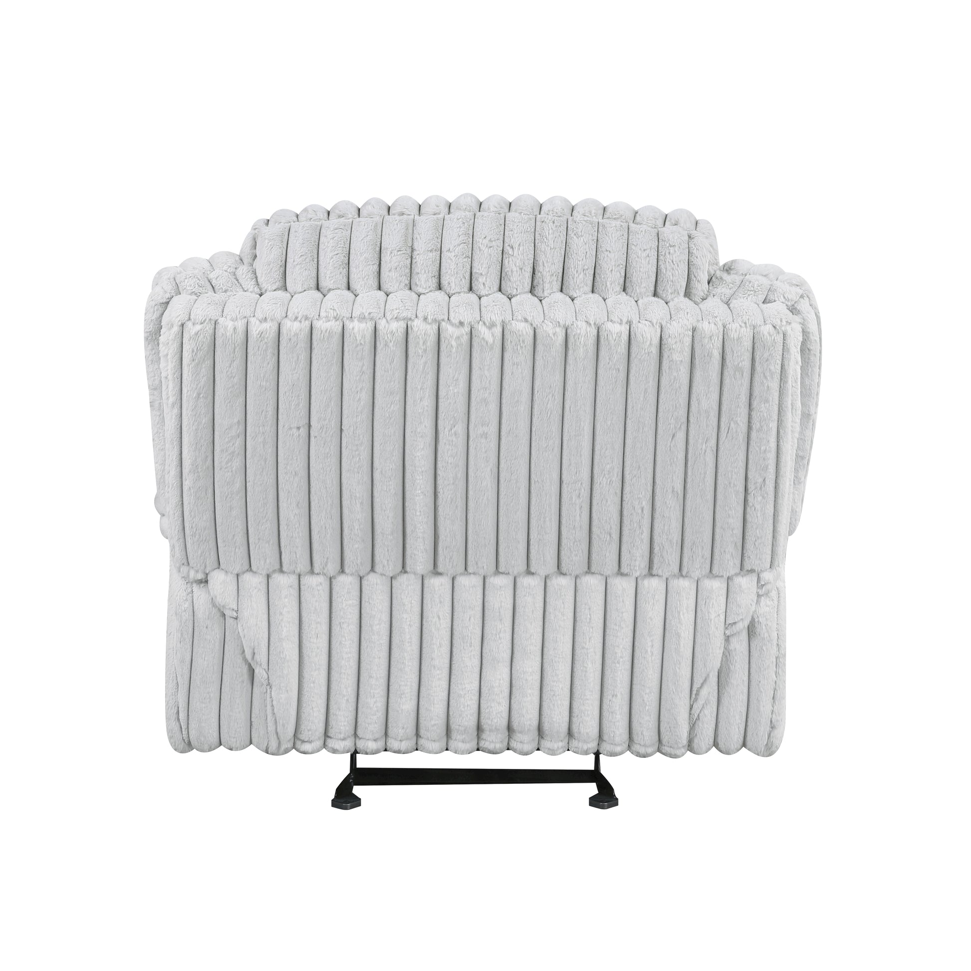 Experience luxurious comfort and effortless relaxation with this oversized manual glider recliner, designed for plush seating and smooth gliding motion. Featuring a pull-tab reclining function, deeply cushioned seating, and extra-wide pillow-top armrests, this recliner provides exceptional lumbar and full-body support for the ultimate lounging experience. Upholstered in ultra-soft ribbed corduroy fabric, it adds a trendy, cozy aesthetic to any living space. The smooth gliding mechanism allows for gentle motion, making it perfect for nurseries, living rooms, or home theaters. Built with a sturdy metal seat frame and reinforced reclining system, this recliner ensures long-lasting durability and seamless operation, creating the perfect spot to unwind and relax.