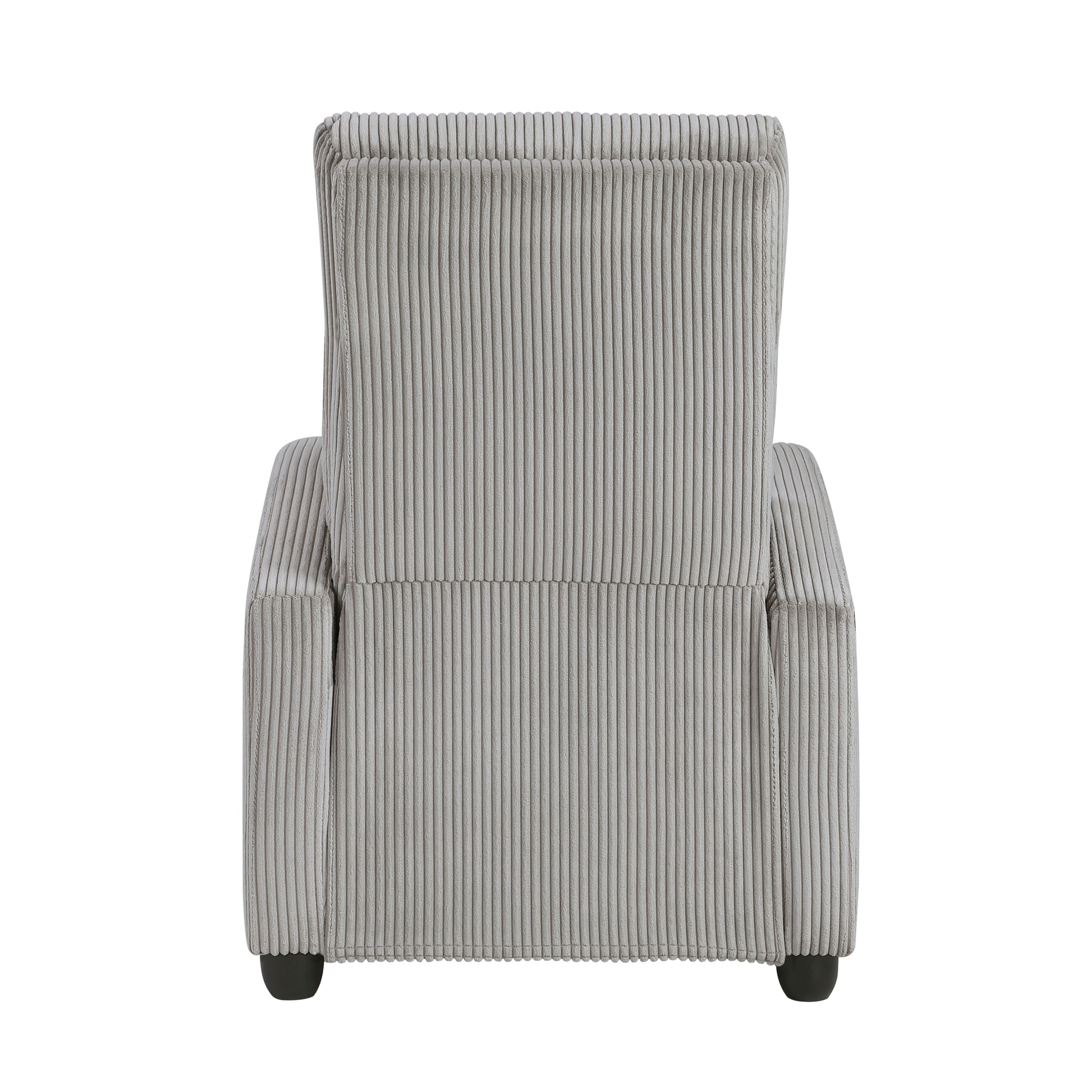 Upgrade your comfort with this stylish Parsons Push Back Reclining Chair, upholstered in soft and durable corduroy gray fabric. Perfect for relaxing in any living room or den, this chair features a sleek design that seamlessly blends comfort and style. The push-back reclining mechanism allows you to easily adjust to your preferred lounging position, making it an ideal spot for reading, watching TV, or taking a nap. Its neutral color complements a variety of décor styles, bringing both functionality and elegance to your home.