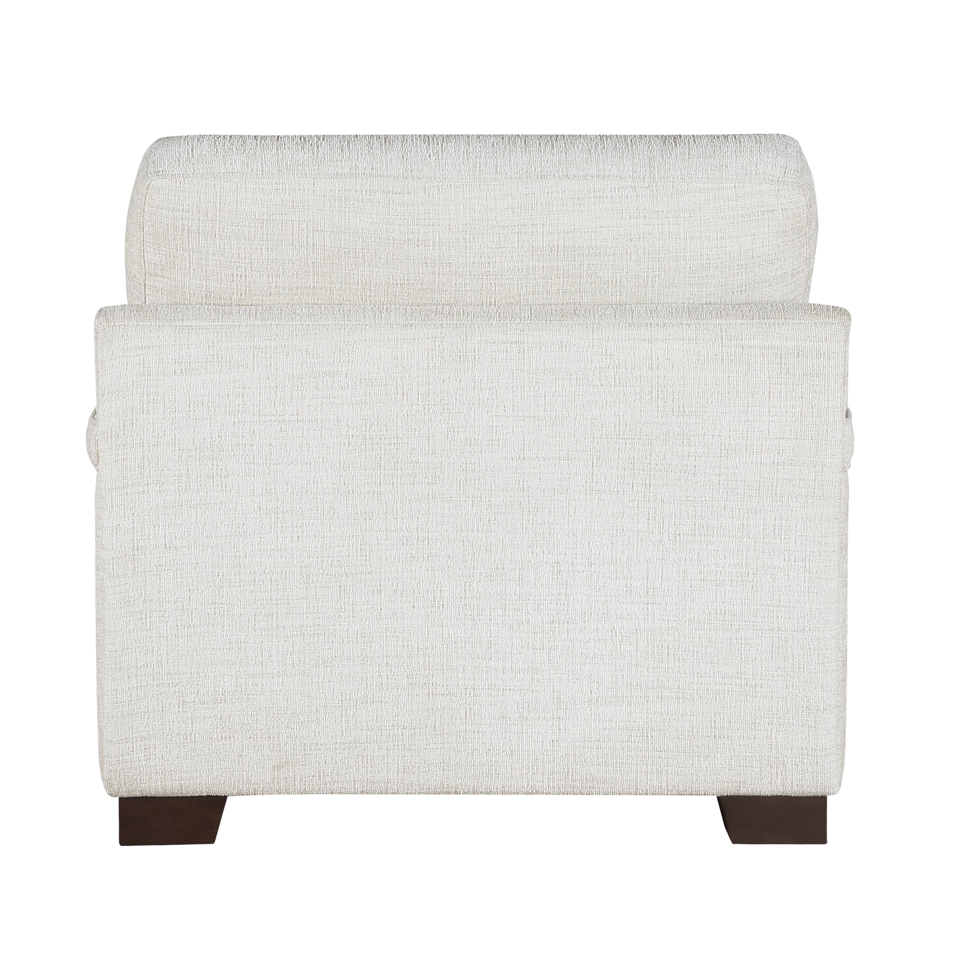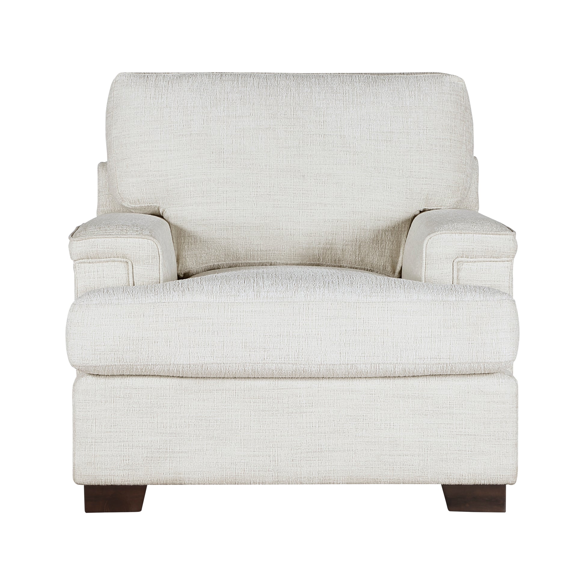 Subtle modern elegance lends its design inspiration to create the lines of the Orson Collection. Substantially sized for your comfort, the distinct profile of the chair lends ample seating space to your living room. Cream chenille fabric upholstery covers the collection with espresso-hued wood legs providing support.
