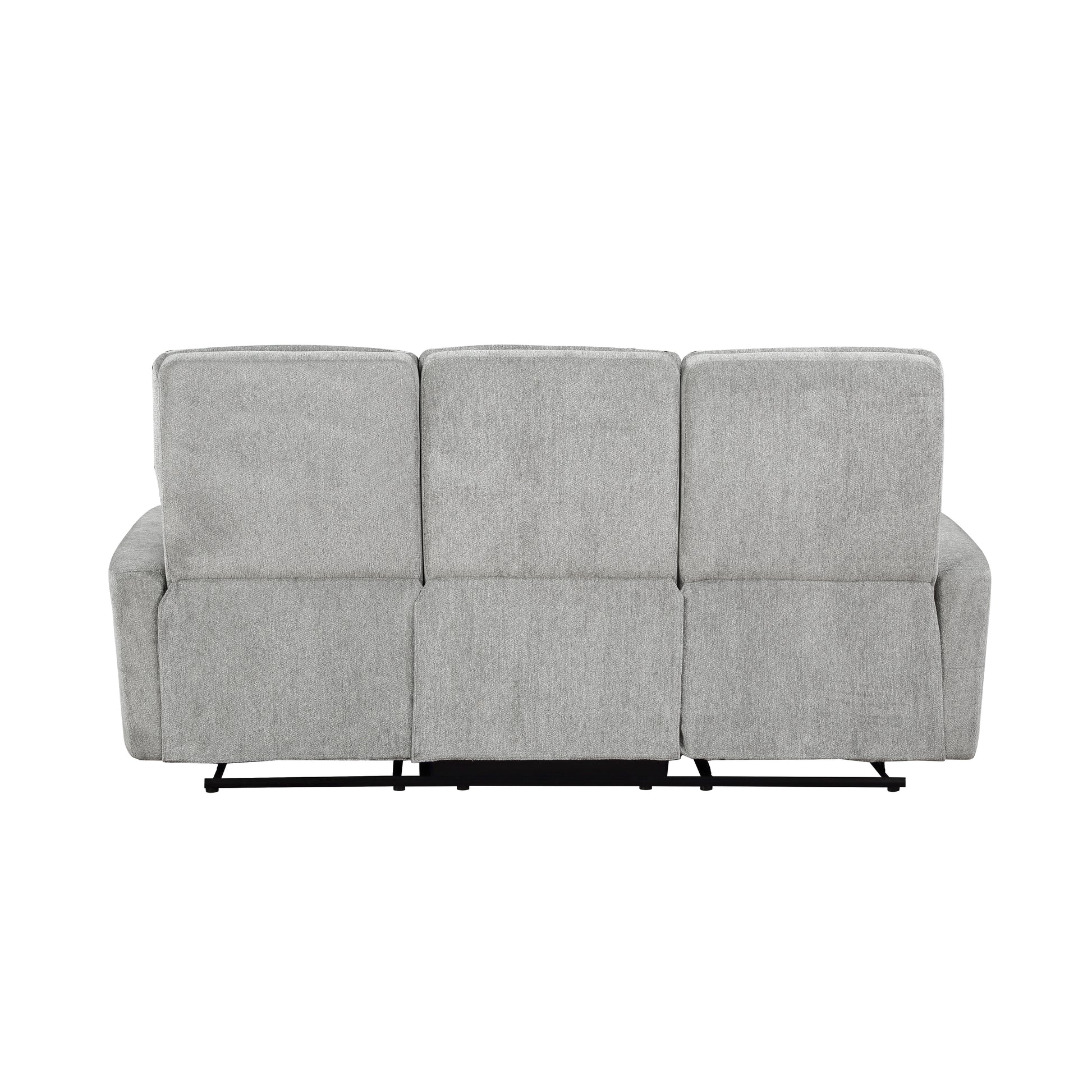 Your comfort is at hand in the design of the Lyndon Collection. The dual reclining ends of the sofa are engaged with a pull of the side-mounted tabs. Gray chenille fabric upholstery covers the plush, subtle modern framing, furthering your comfort, and serving as a neutral palette for your living room décor.