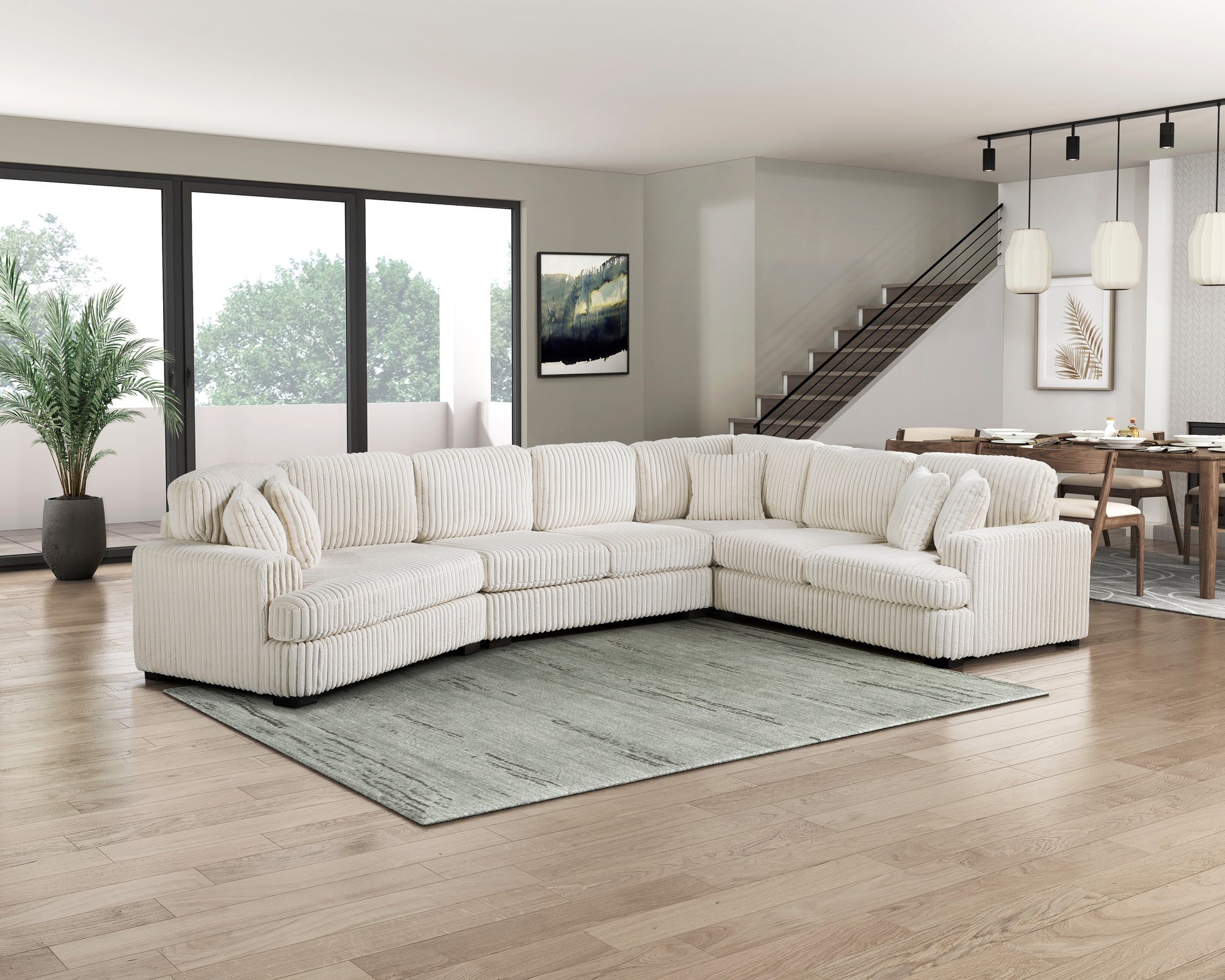 With ample space to stretch out or provide the extra seating your living room needs the Warwick Collection is the perfect platform for you to indulge in comfort. The armless two-seater of the Warwick Collection features plush beige corduroy fabric upholstery furthering your plush seating experience.