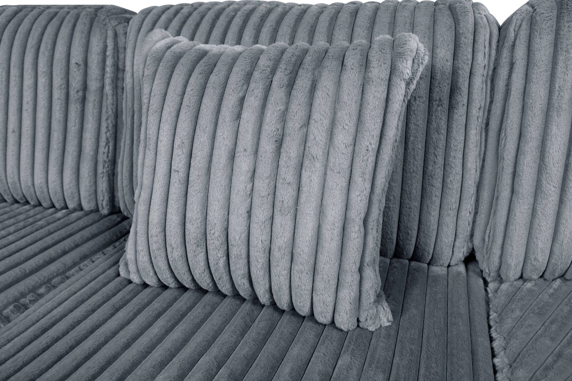 With ample space to stretch out or provide the extra seating your living room needs the Warwick Collection is the perfect platform for you to indulge in comfort. The right-side two-seater of the Warwick Collection features plush gray corduroy fabric upholstery furthering your plush seating experience.