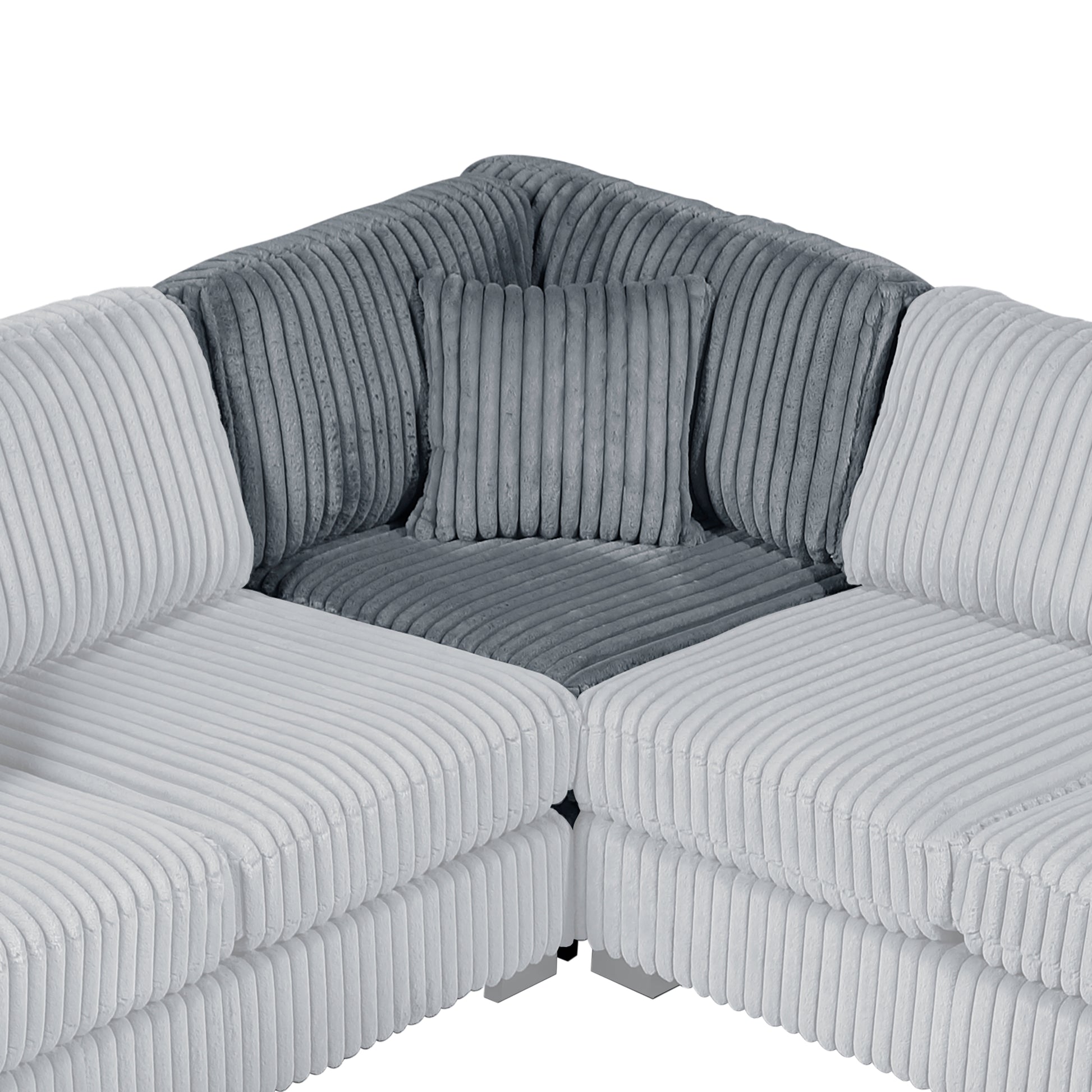 With ample space to stretch out or provide the extra seating your living room needs the Warwick Collection is the perfect platform for you to indulge in comfort. The corner seat of the Warwick Collection features plush gray corduroy fabric upholstery furthering your plush seating experience.