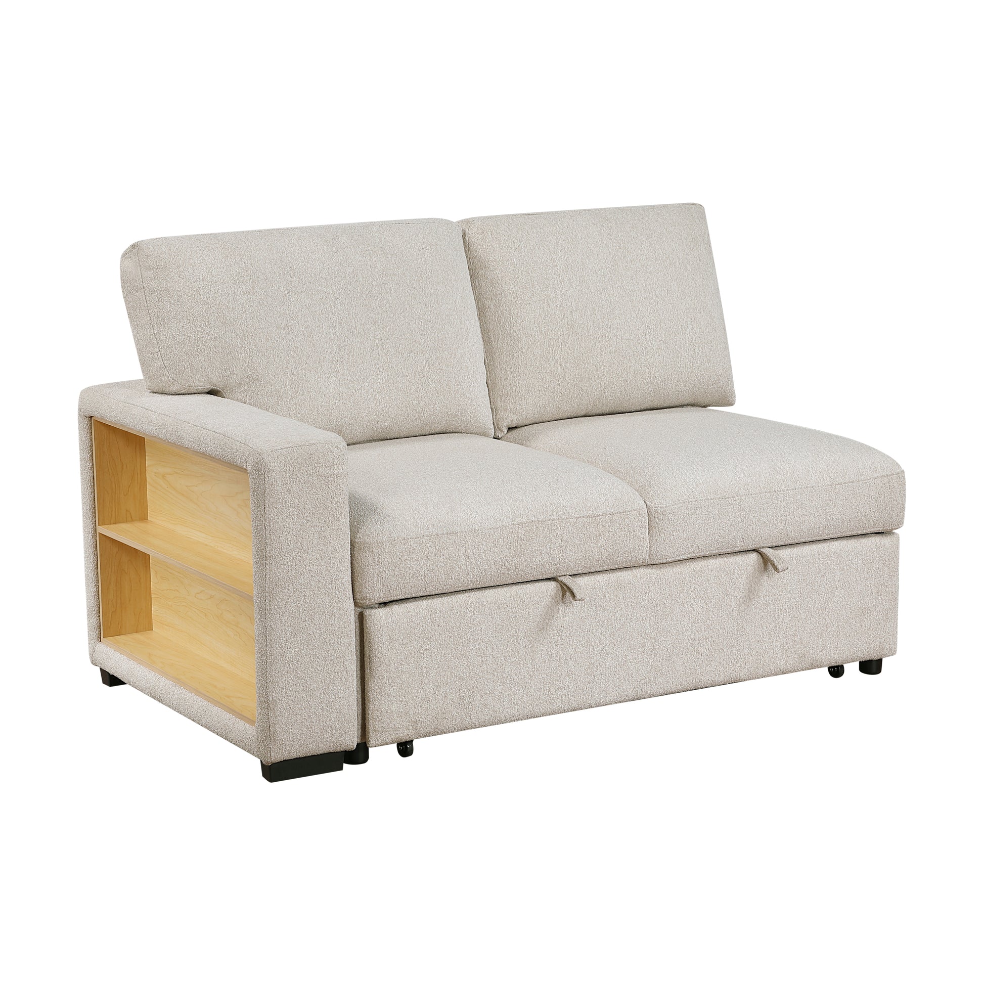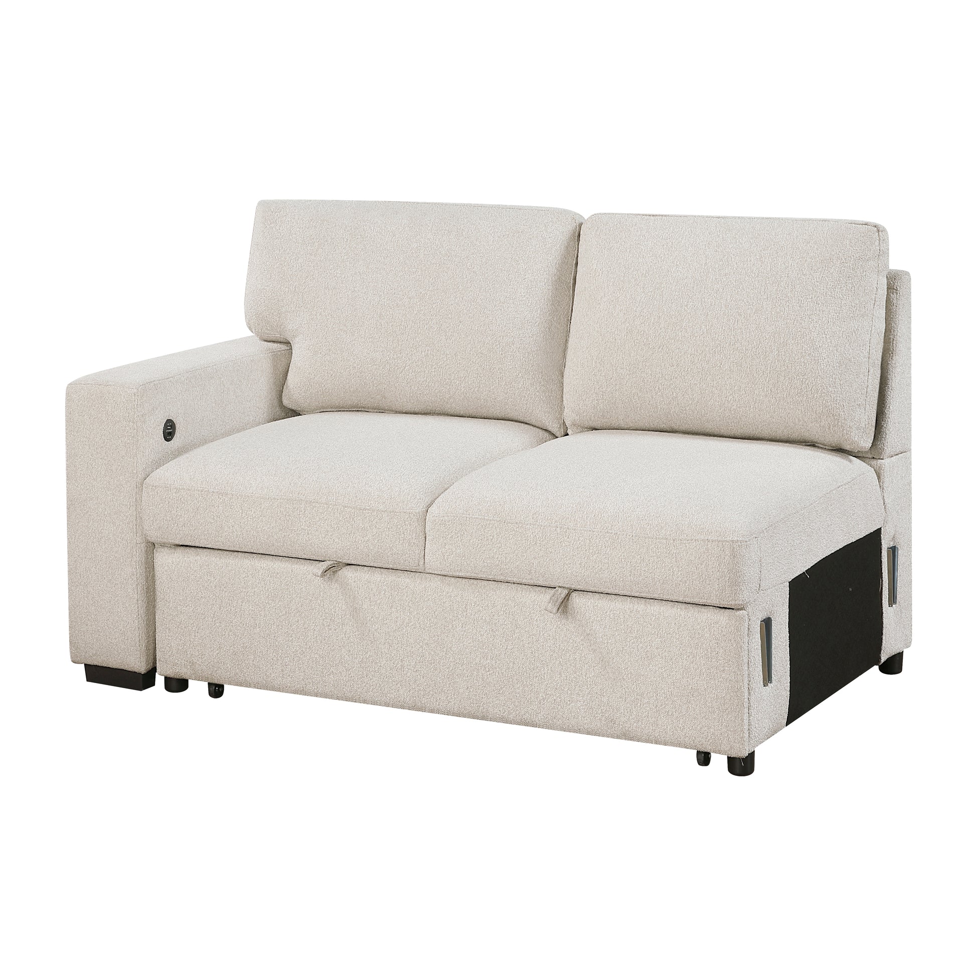 Maximize both style and functionality with this modern sectional sofa, designed for ultimate comfort, smart storage solutions, and contemporary elegance. Featuring a right-facing chaise lounge, a pull-out sleeper bed, and multiple hidden storage compartments, this sectional is perfect for lounging, entertaining, and optimizing living spaces. The built-in shelves on the armrest provide easy access to books, décor, or essentials, while integrated USB charging ports keep your devices powered without the clutter of extra cords. Upholstered in soft, durable fabric, this multi-functional sectional seamlessly blends style, practicality, and everyday convenience, making it an ideal centerpiece for any living room or entertainment space.