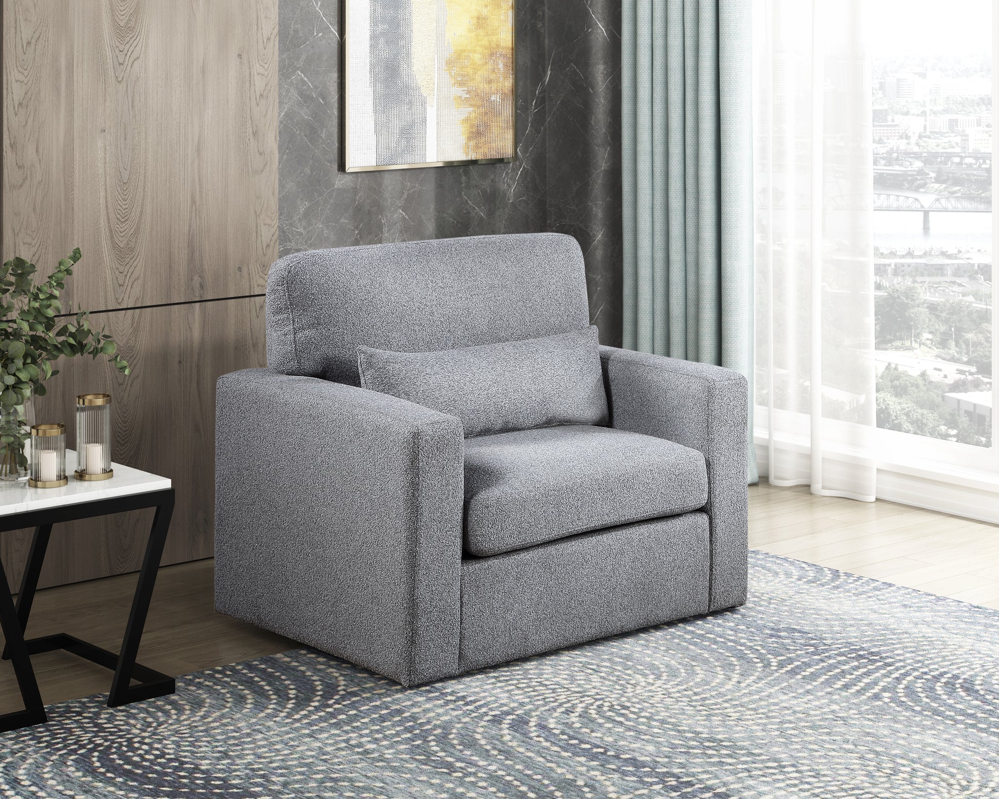 Experience ultimate comfort and effortless mobility with this contemporary 360-degree swivel chair, designed for modern elegance and ergonomic support. Featuring a smooth swivel base, this chair allows seamless rotation, making it perfect for multitasking, lounging, or engaging in conversation. The plush cushioned seat, supportive backrest, and included lumbar pillow provide superior comfort, while the sleek, upholstered design adds a sophisticated touch to any space. Whether placed in a living room, bedroom, or home office, this versatile swivel chair blends style and functionality, offering a cozy yet chic seating solution for any modern home.