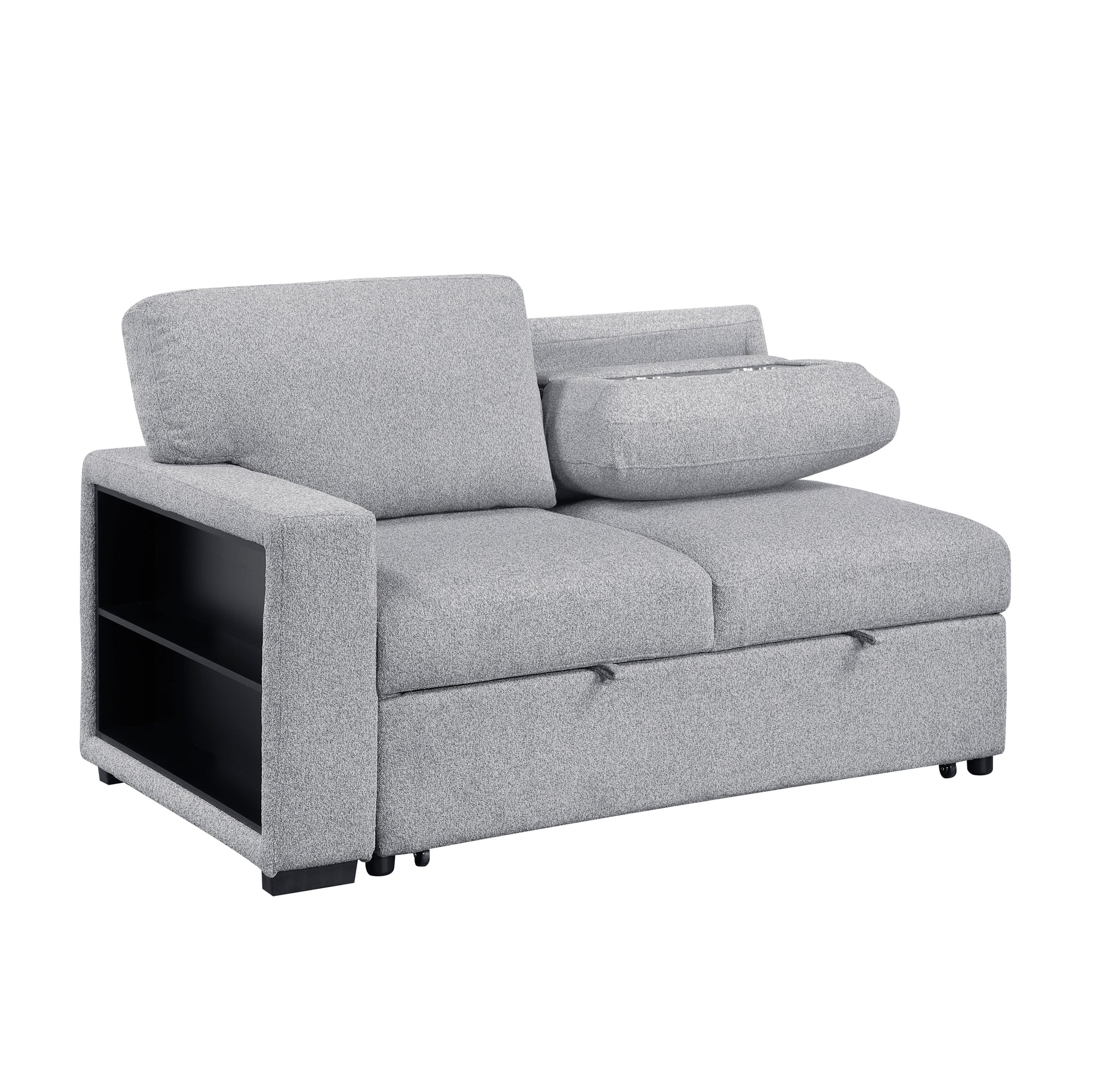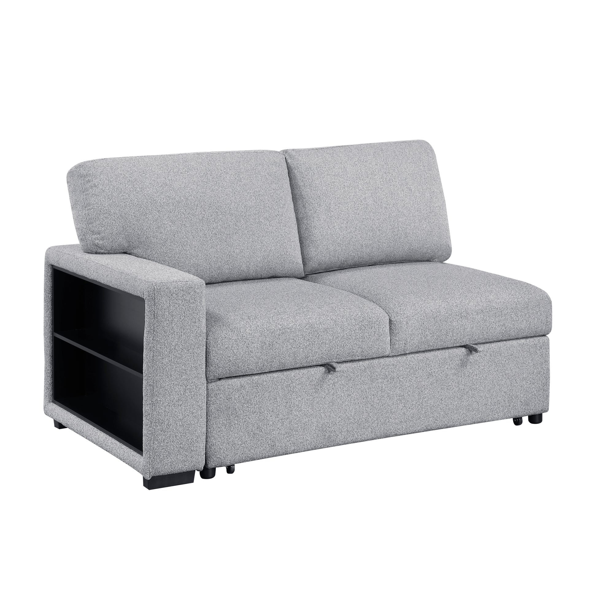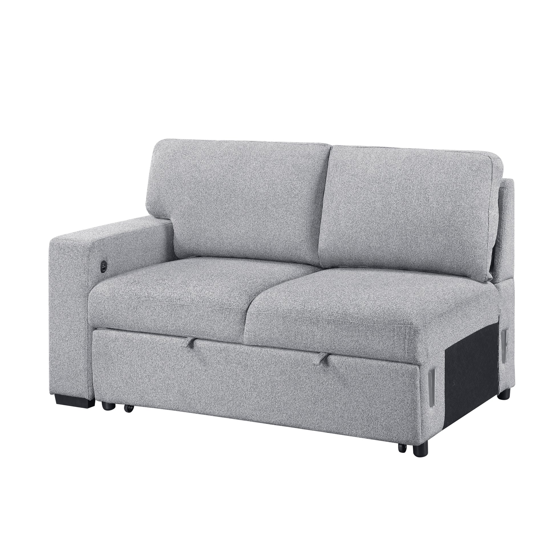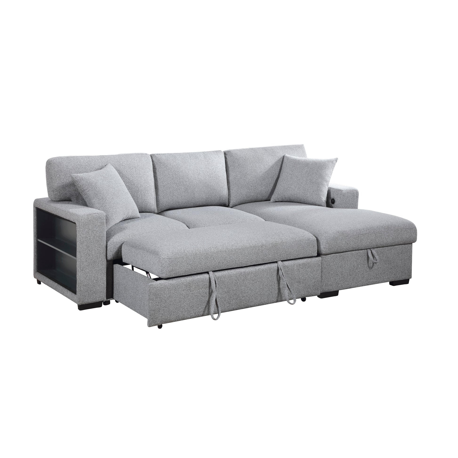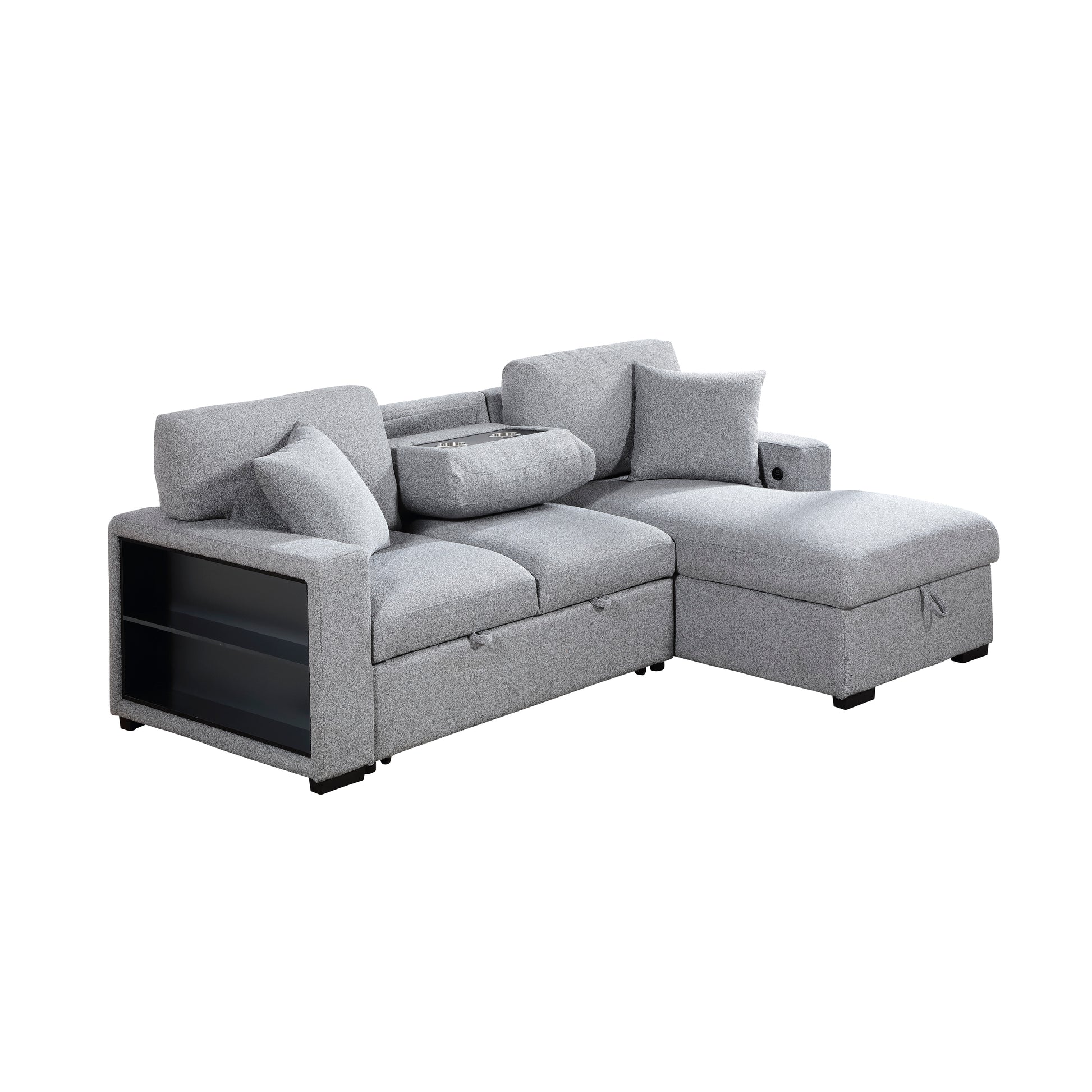 Maximize your living space with this modern and multi-functional sectional sofa, designed to deliver comfort, convenience, and smart storage solutions. Featuring a right-facing chaise lounge, a pull-out sleeper bed, and hidden storage compartments, this sectional is perfect for small spaces, guest rooms, or everyday lounging. The built-in open shelves on the armrest offer easy access to books, décor, or daily essentials, while the integrated USB charging ports ensure that your devices stay powered without messy cords. Wrapped in soft, durable fabric upholstery, this space-saving sectional blends style, functionality, and contemporary elegance, making it an ideal centerpiece for any living room or entertainment area.