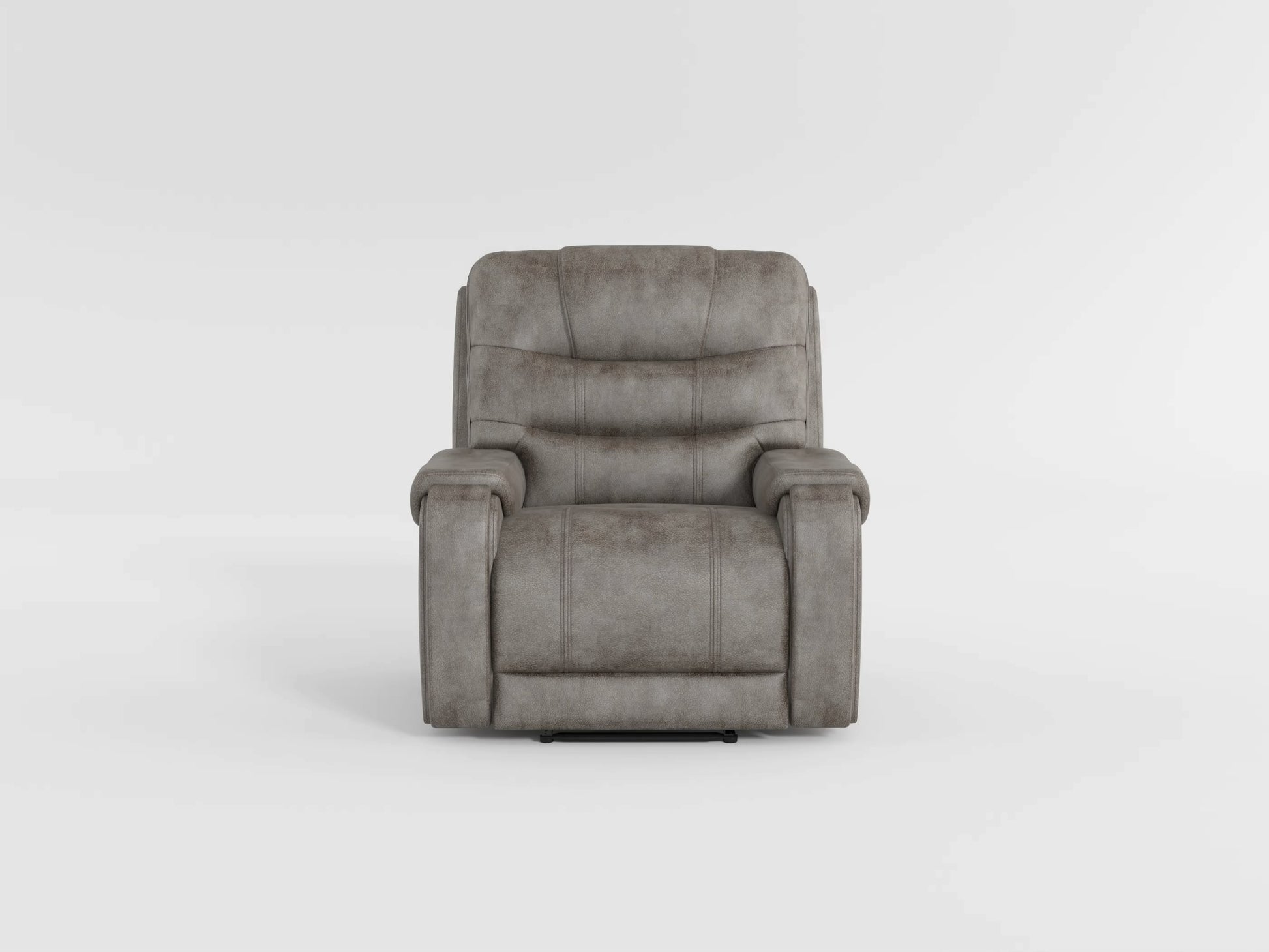 A subtle modern profile is combined with plush seating to create the design of the Oberon Collection. The reclining chair allows for solo seating within your space. A manual motion mechanism allows for your reclined experience and is engaged with a pull of the side mounted tab. Grayish-brown polished microfiber covers the collection, its neutral hue offering a warm balance to your living room’s décor.