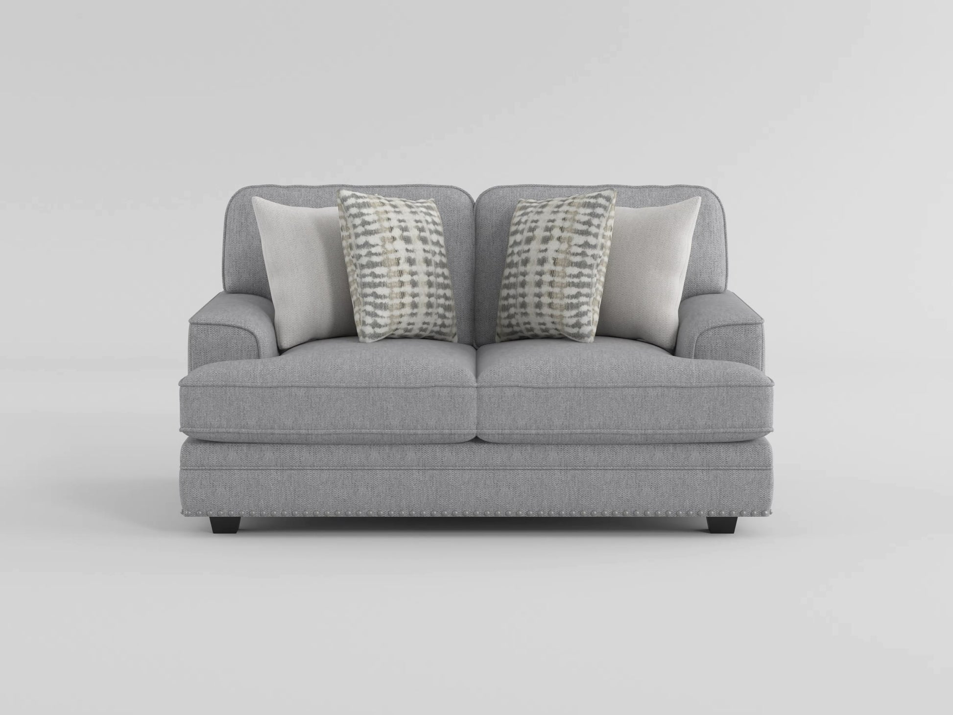 With a transitional design that is a complement to your home’s living room, the Bradford Collection utilizes classic lines, refined texture, and traditional accenting to achieve a universally appealing look. The love seat is covered in gray chenille fabric upholstery. Nail head trim accents the base rails, while profile-defining welting provides a tailored finish. Complementing contrast toss pillows are paired with the love seat.