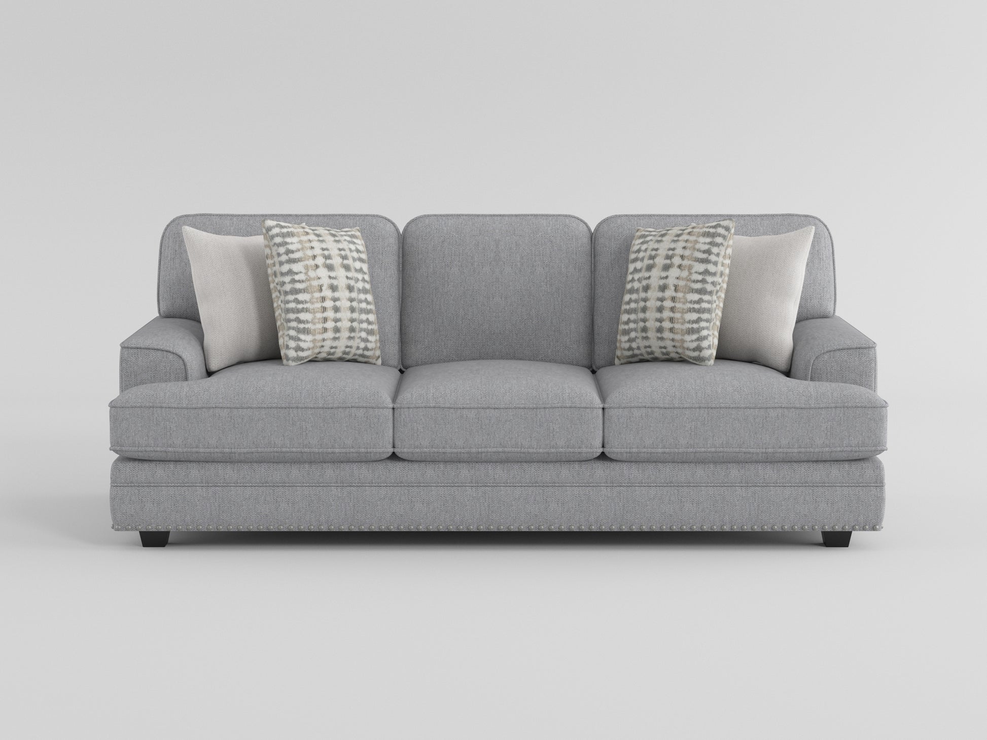 With a transitional design that is a complement to your home’s living room, the Bradford Collection utilizes classic lines, refined texture, and traditional accenting to achieve a universally appealing look. The sofa is covered in gray chenille fabric upholstery. Nail head trim accents the base rails, while profile-defining welting provides a tailored finish. Complementing contrast toss pillows are paired with the sofa.